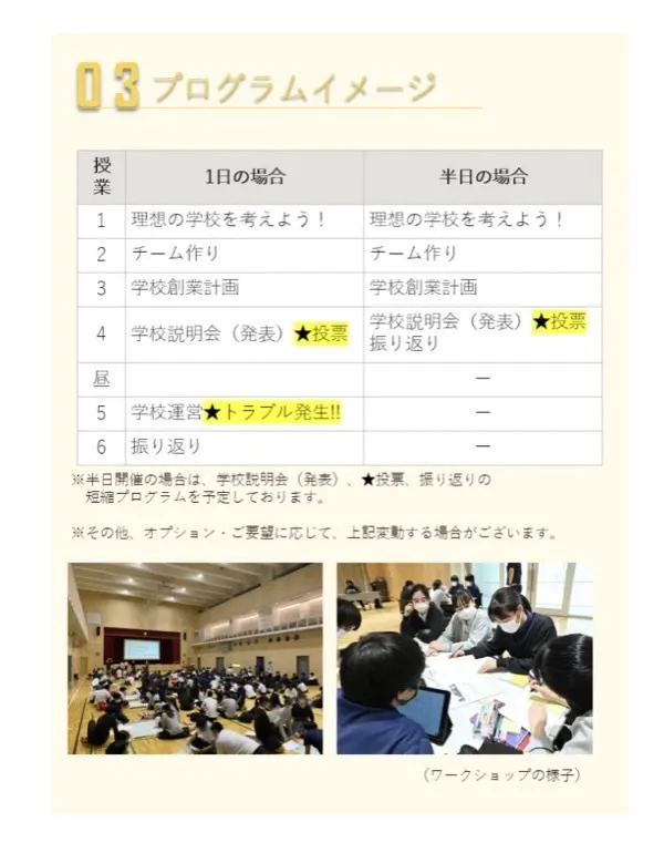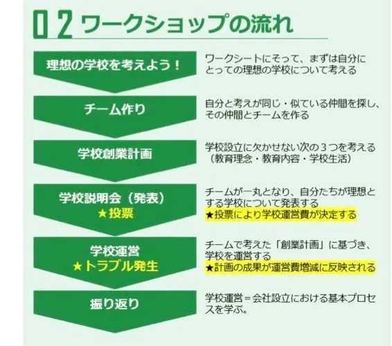 『SCHOOL☆LAB』は、生徒たちが考える“理想の学校”を創るというゲームの中に、起業する際に必要な思考やプロセスを学べる新しいワークショップです。