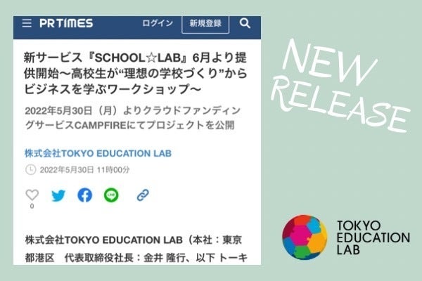 株式会社TOKYO EDUCATION LABから新サービスSCHOOL☆LABのリリースが発表されました!
