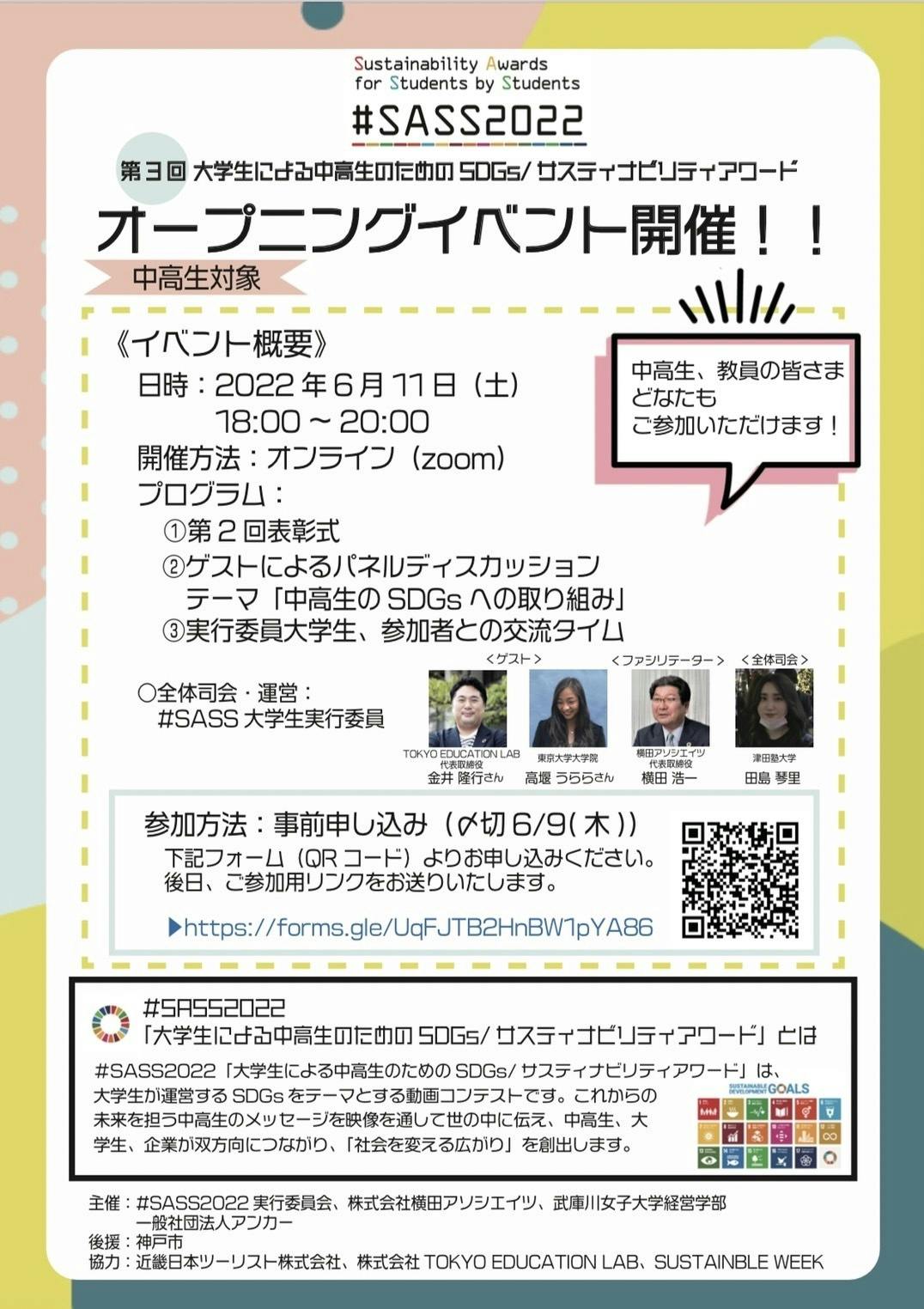 6月11日(土)に開催される「#SASS2022 表彰式/オープニングイベント」に代表の金井がゲスト出演します。