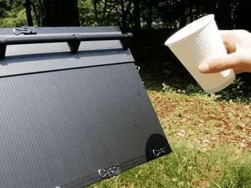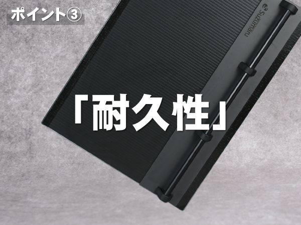 屋内だけでなく、屋外でもカンペを出せるように考えられた「耐久性」。