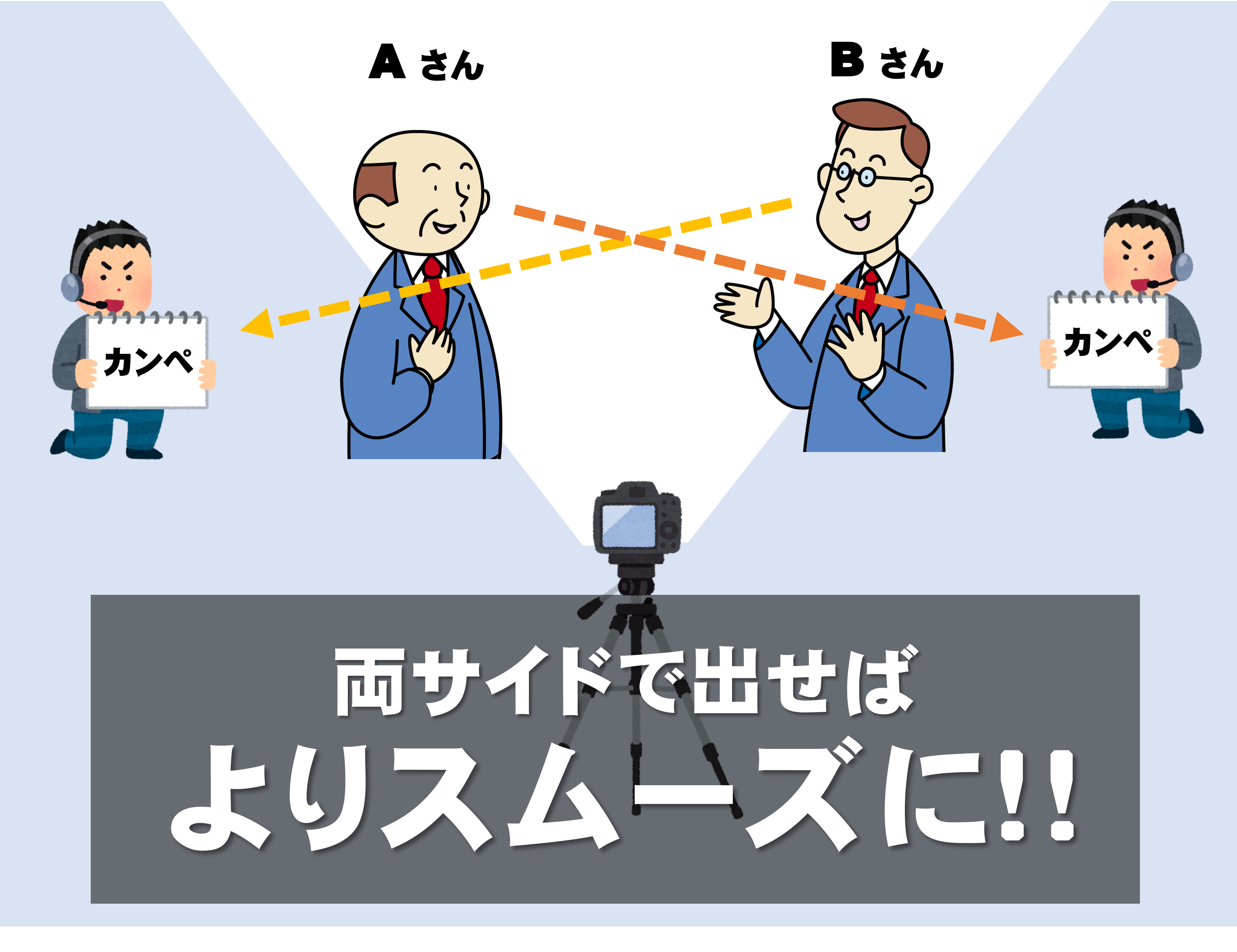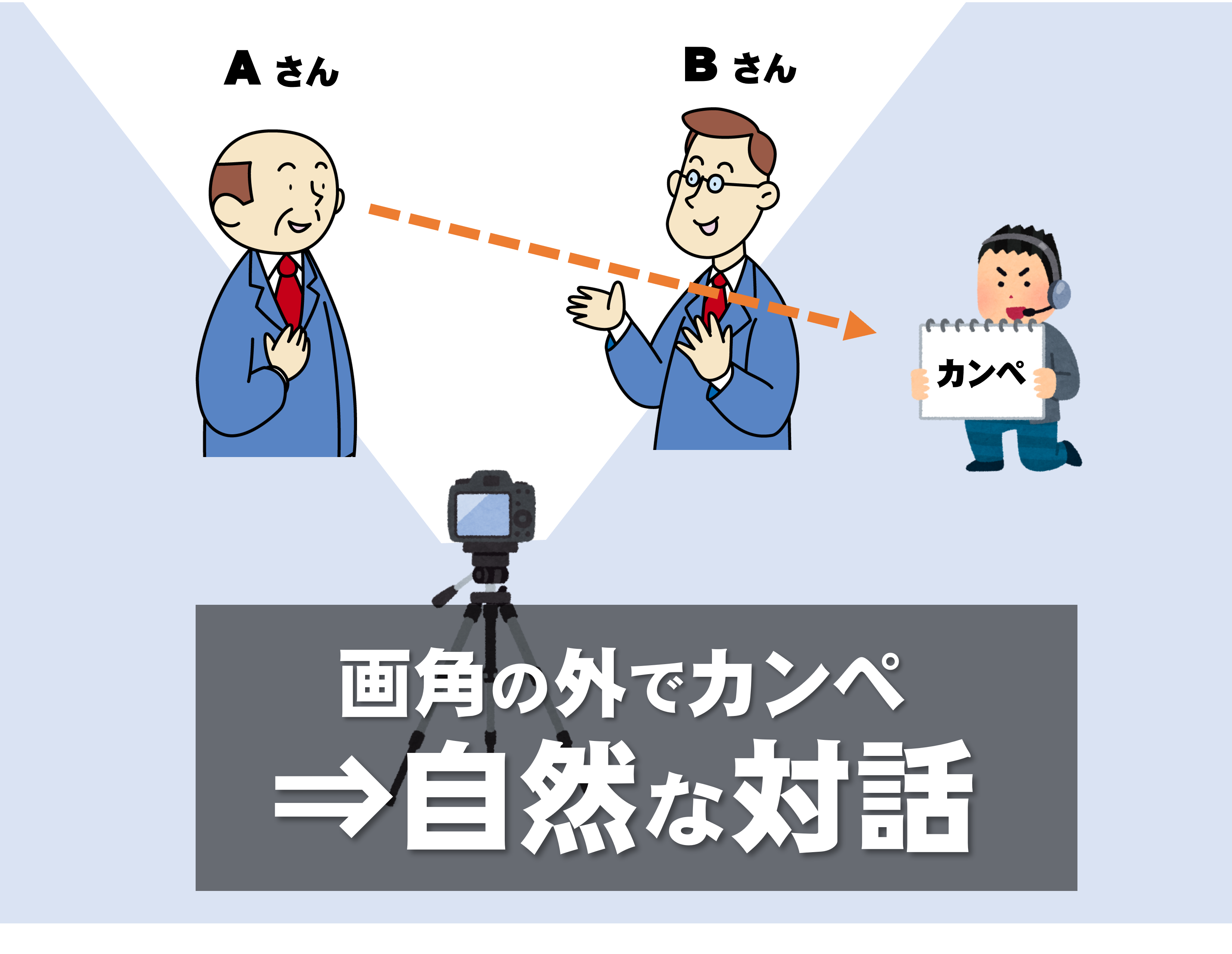 カンペは声を出せないシーンで大活躍します。