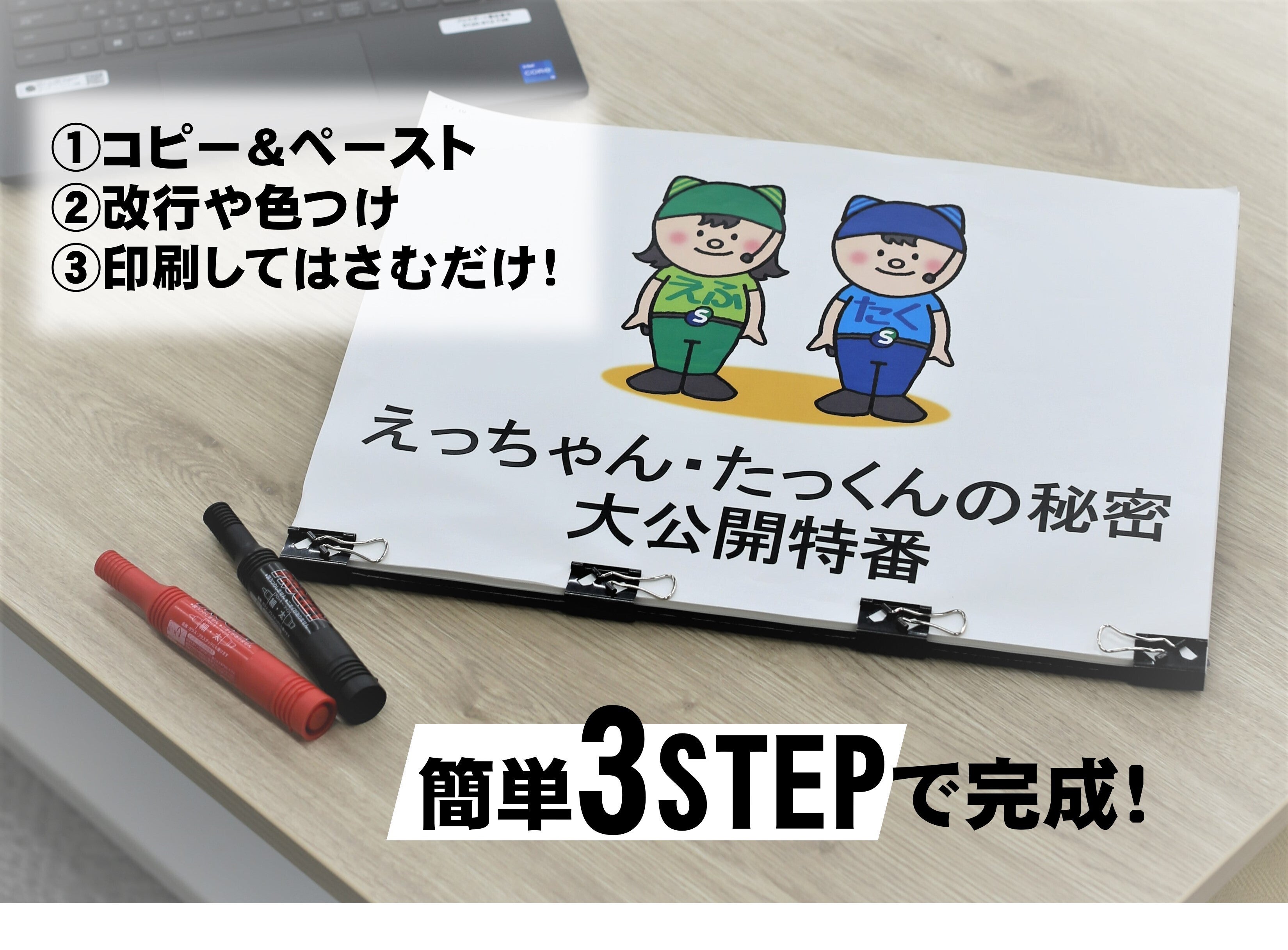 すずまるカンペ台があれば、カンペの作成は簡単3STEPで終了!