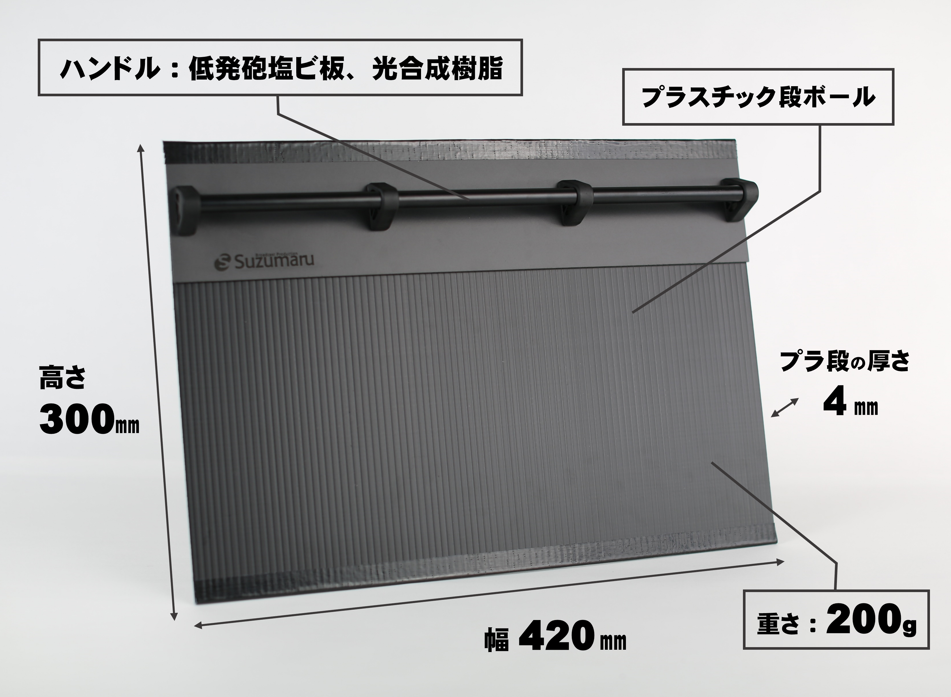 幅 420㎜ ×厚さ 4~8㎜(ハンドル箇所40㎜) × 高さ 300㎜
