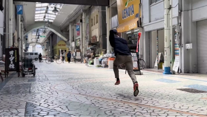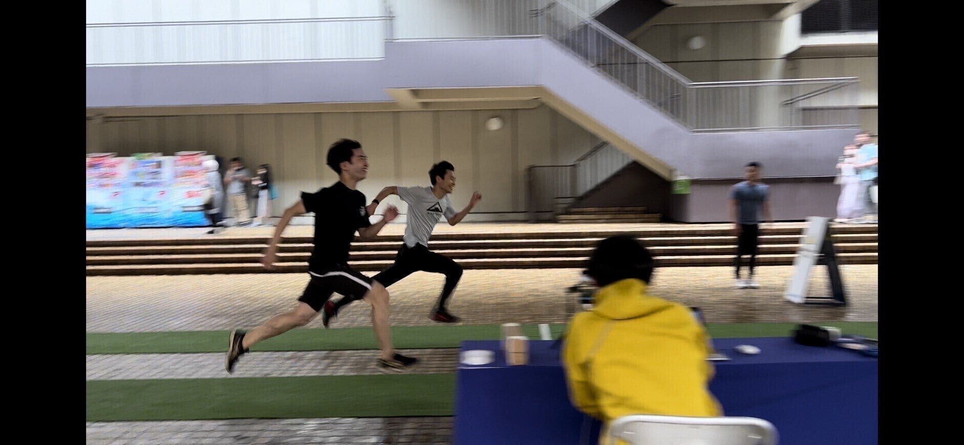 屋根のあるアーケード街で50m〜100mのタイム計測+対決