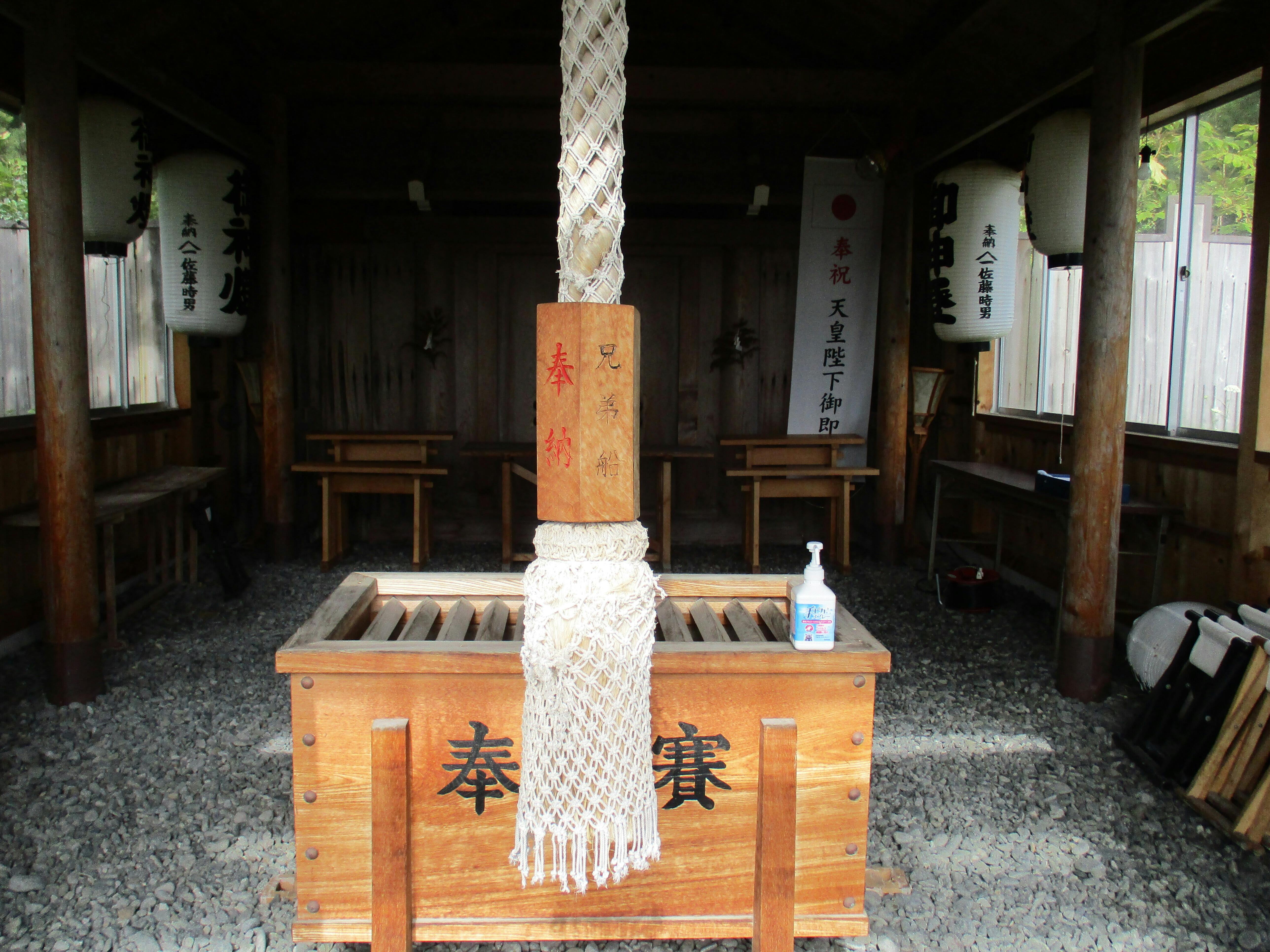 こんにちは、歌手の鳥羽一郎さんよりの鈴を鳴らしてください、災害の後にいただきました、島に愛着がありプレゼントをしれくれました。兄弟船と刻まれています。おいせまいりを島からお願いします、明上雅孝。