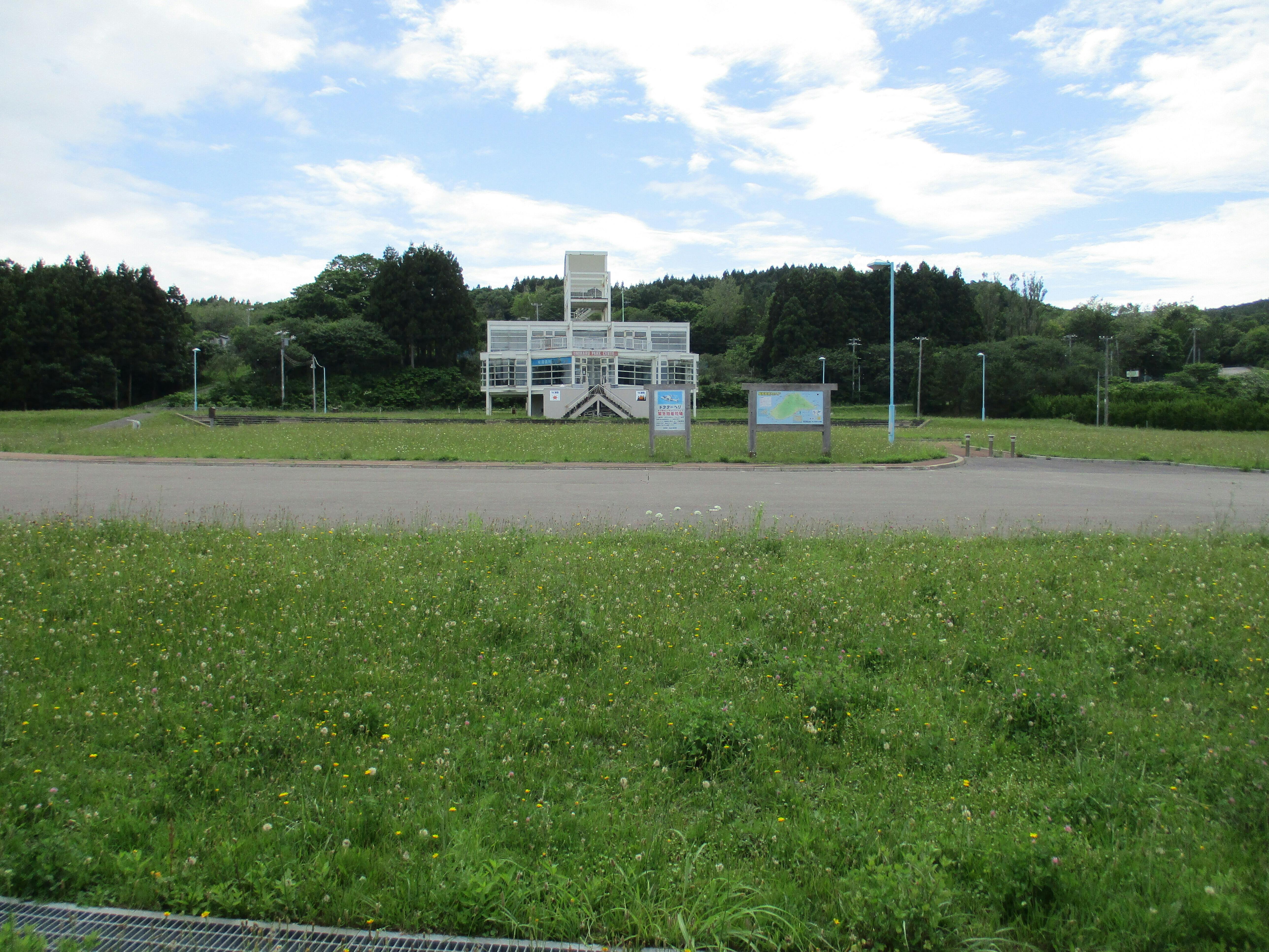 こんにちは、ウニ丸公園です、この近くには、高校、中学校、公園、キャンプ場、葬祭場、墓地、などがあります。ドクターヘリもこの近くに降りますよ。明上雅孝。