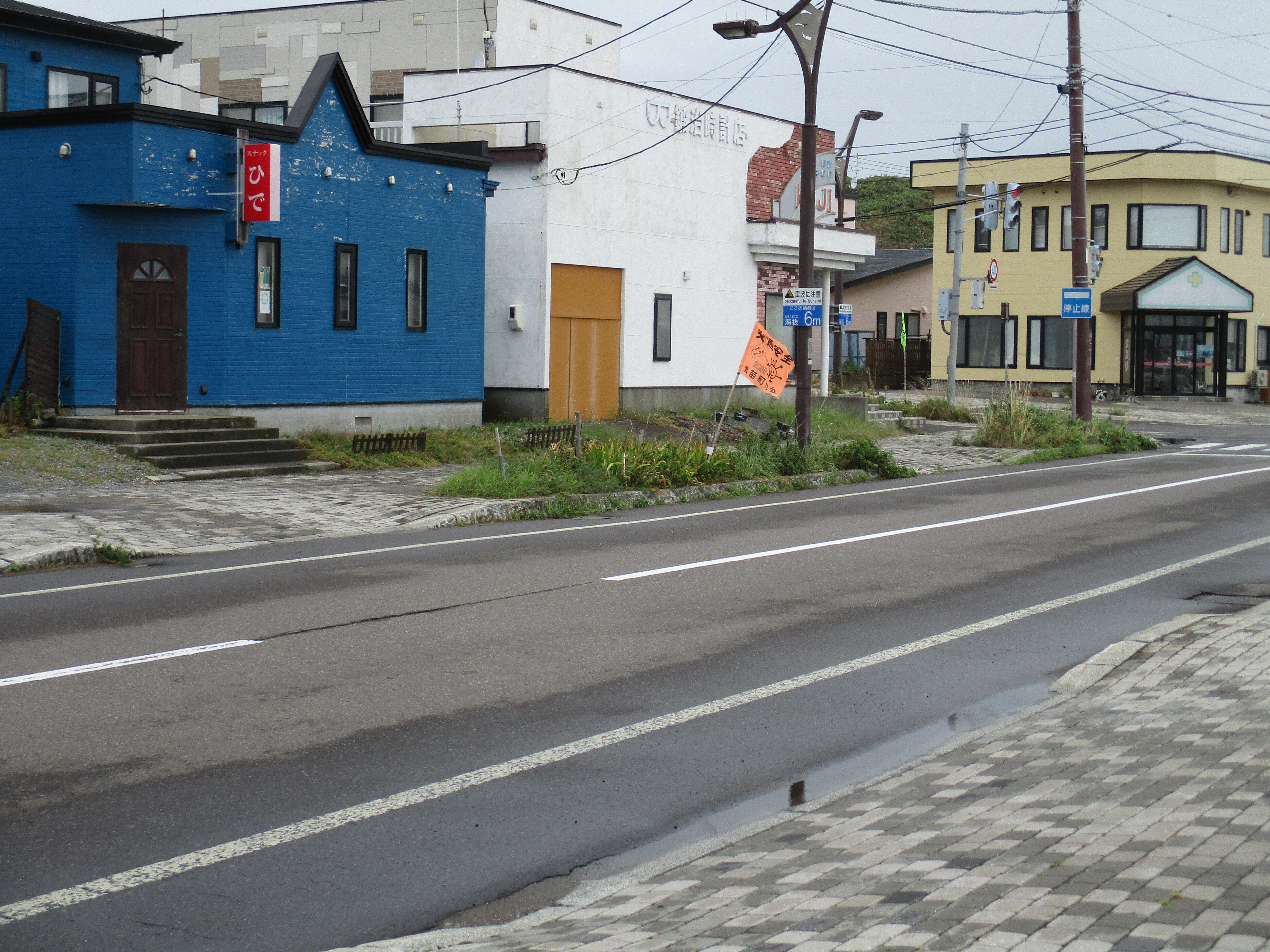 こんにちは、今は雨の24度です、青苗の商店街ですよ。災害の後に14戸でスタートしたお店も今は半数になり静かなものです、工事関係者が多いために宿の空きが少ないです。観光で来ても、泊まれないよとの言葉です。明上雅孝。