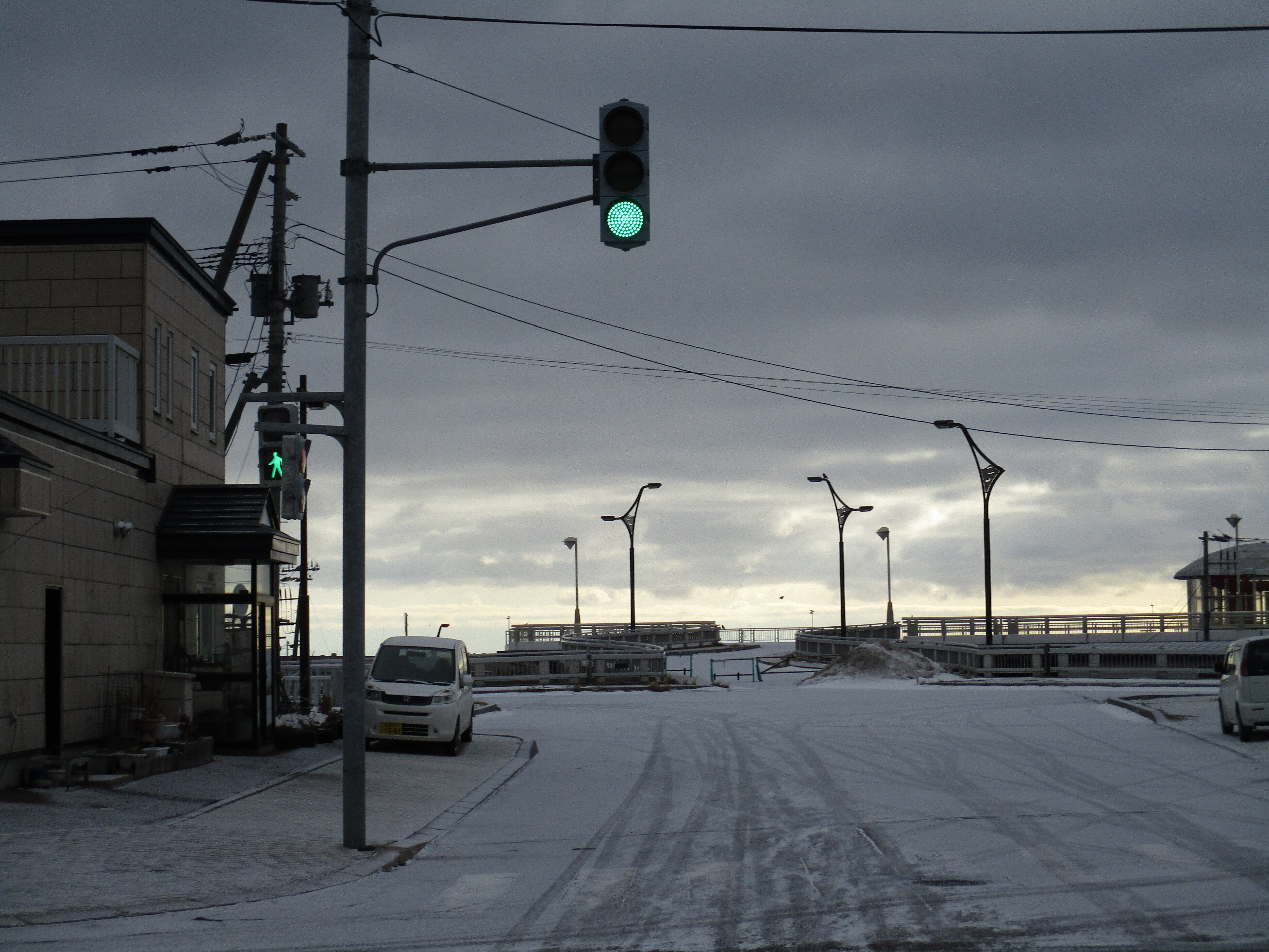 こんにちは、ようやく信号機が正常になりました。まだ慣れていません、青でも一時停止をしてしまいそうです。青苗の市街地は静かです。人も歩いていません。時間が止まってる島と言いますが。明上雅孝。