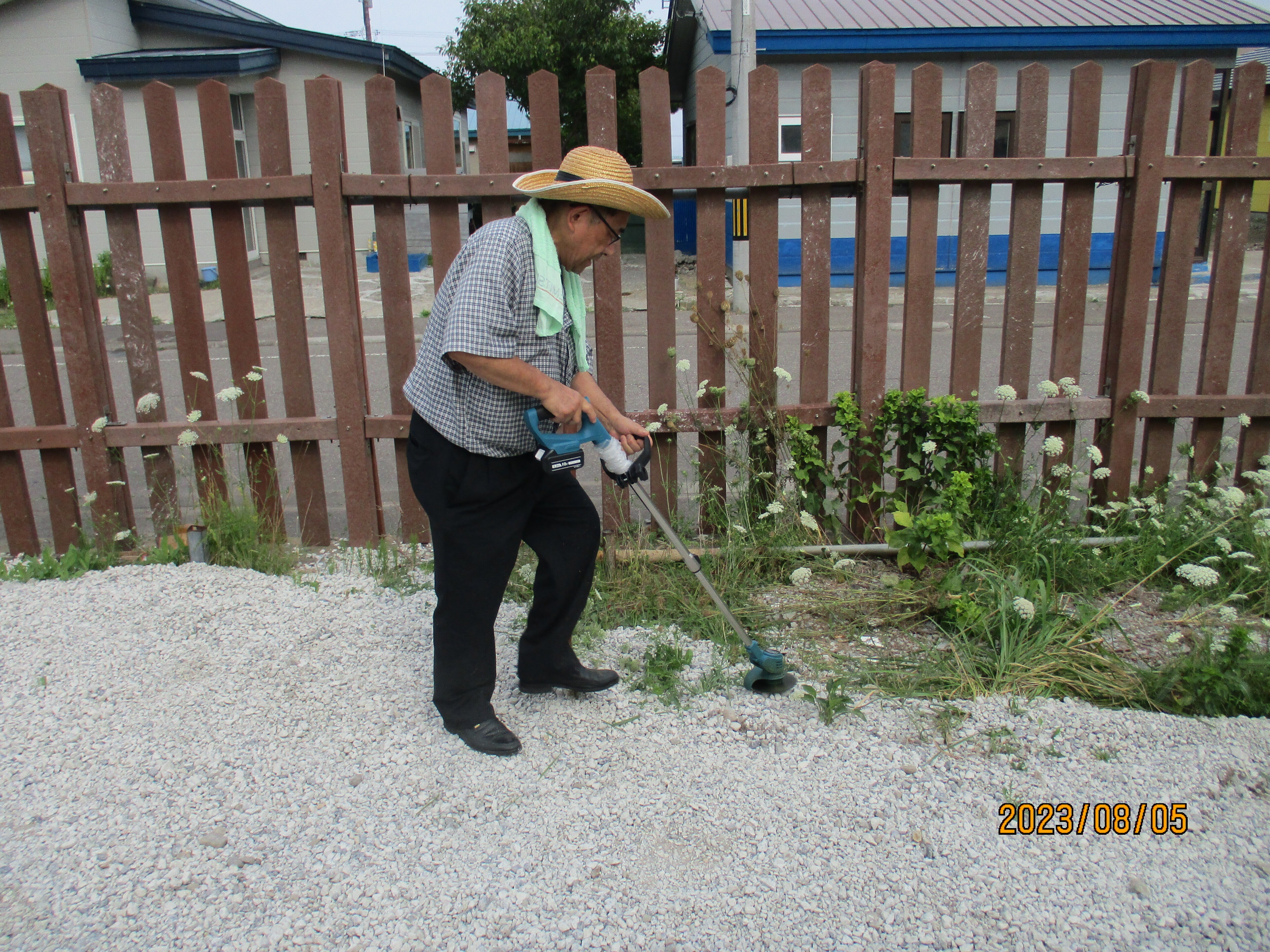 こんにちは、今年は此の格好で神社内の草刈りをしました。暑かったですよ。間を置いて3日間でした。趣味でした。この後はお墓も少しこっそり刈りました。何せ電動式なので音が静かで最高です。いつも車に積んでますよ。伸び縮みするので。お笑い芸人ですが。明上雅孝。