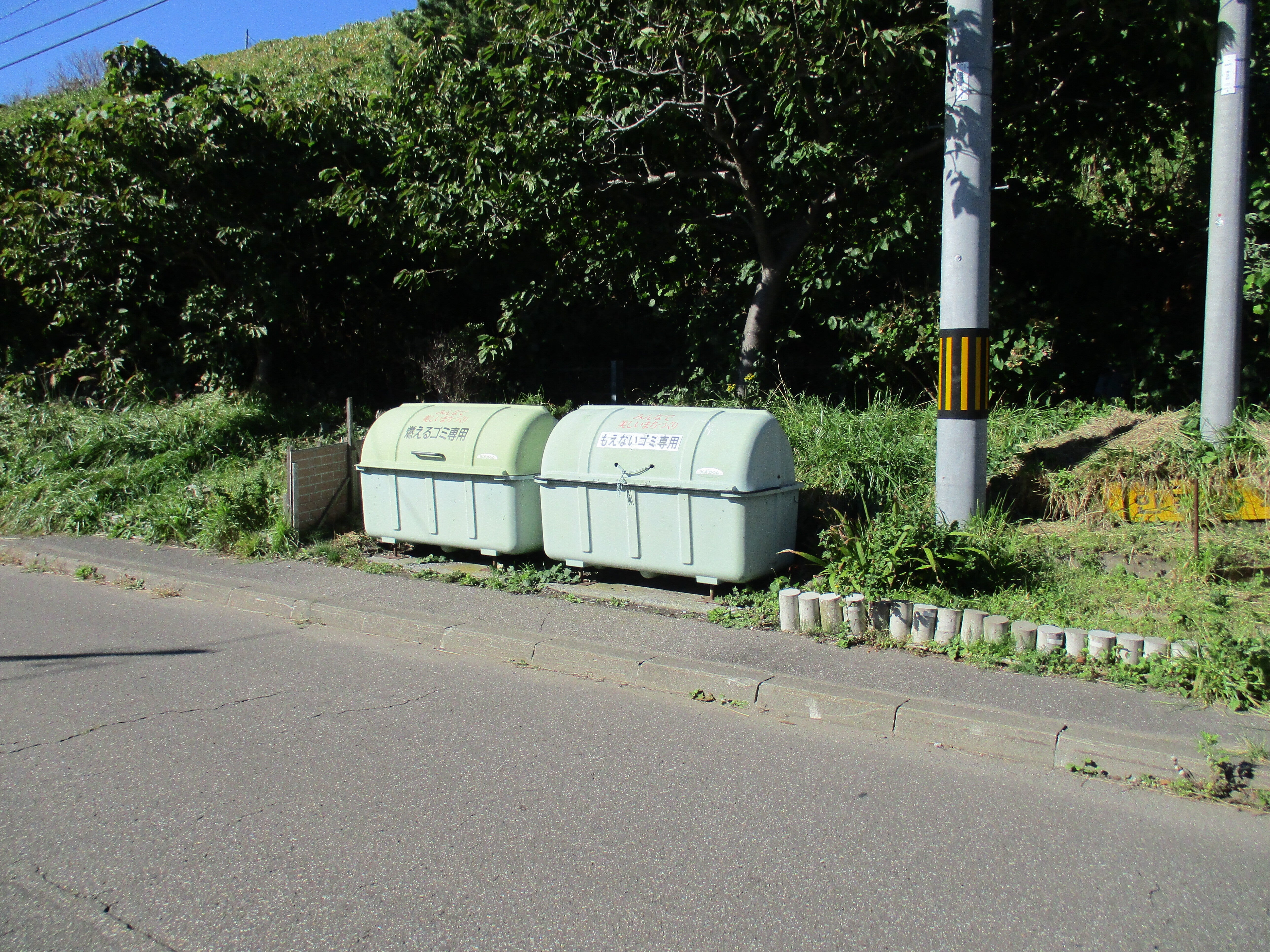 こんにちは、青苗地区のごみステーションです。地震災害後に設置されました。地震災害から30年が経ちました、痛みも激しくなりました。奥尻地区にはごみステーションはありません。その都度車のところまで持っていきます。明上雅孝。