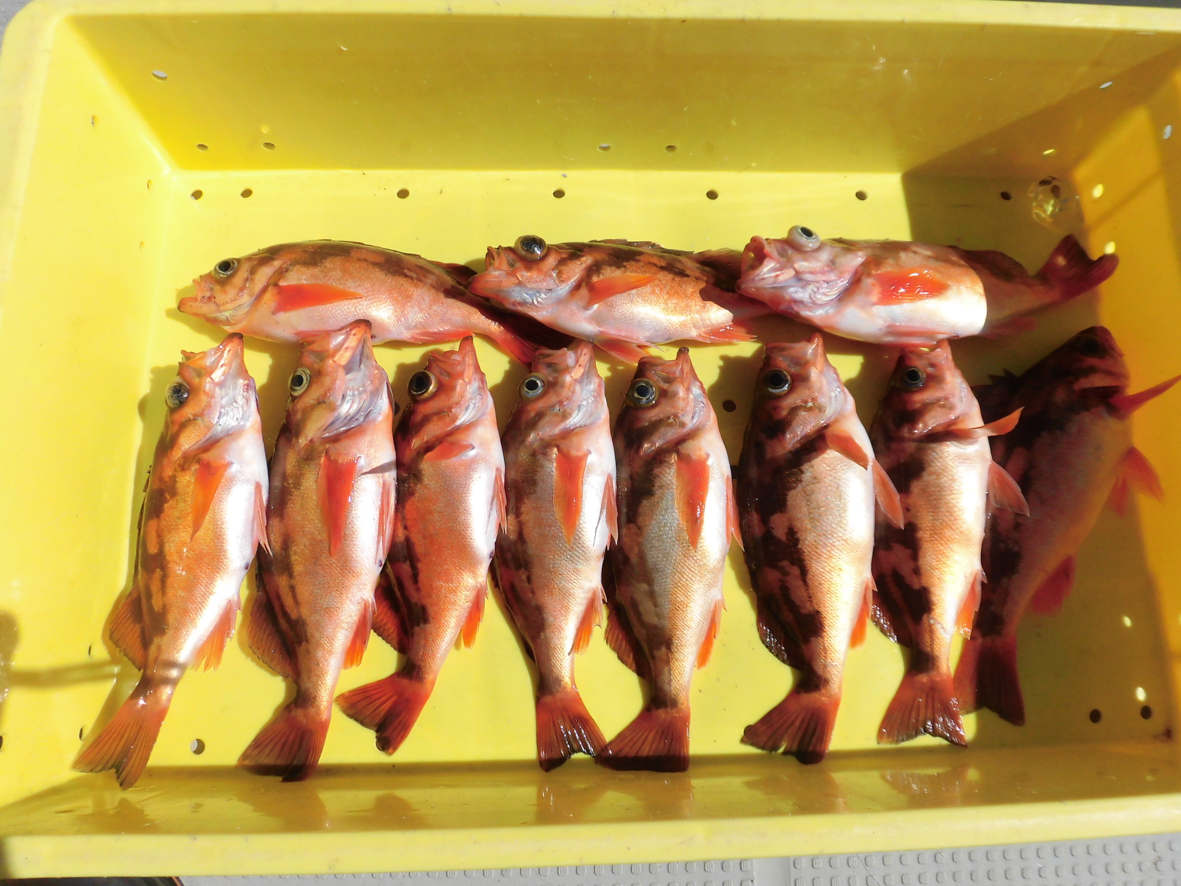 こんにちは、島で取れますメバルと言います、刺身や煮つけにいい用です。小骨に気をつけて下さい。今度はタラ釣りの予定です、奥尻島は遊漁船も多く、多きいものを釣るのに意識しています。明上雅孝。