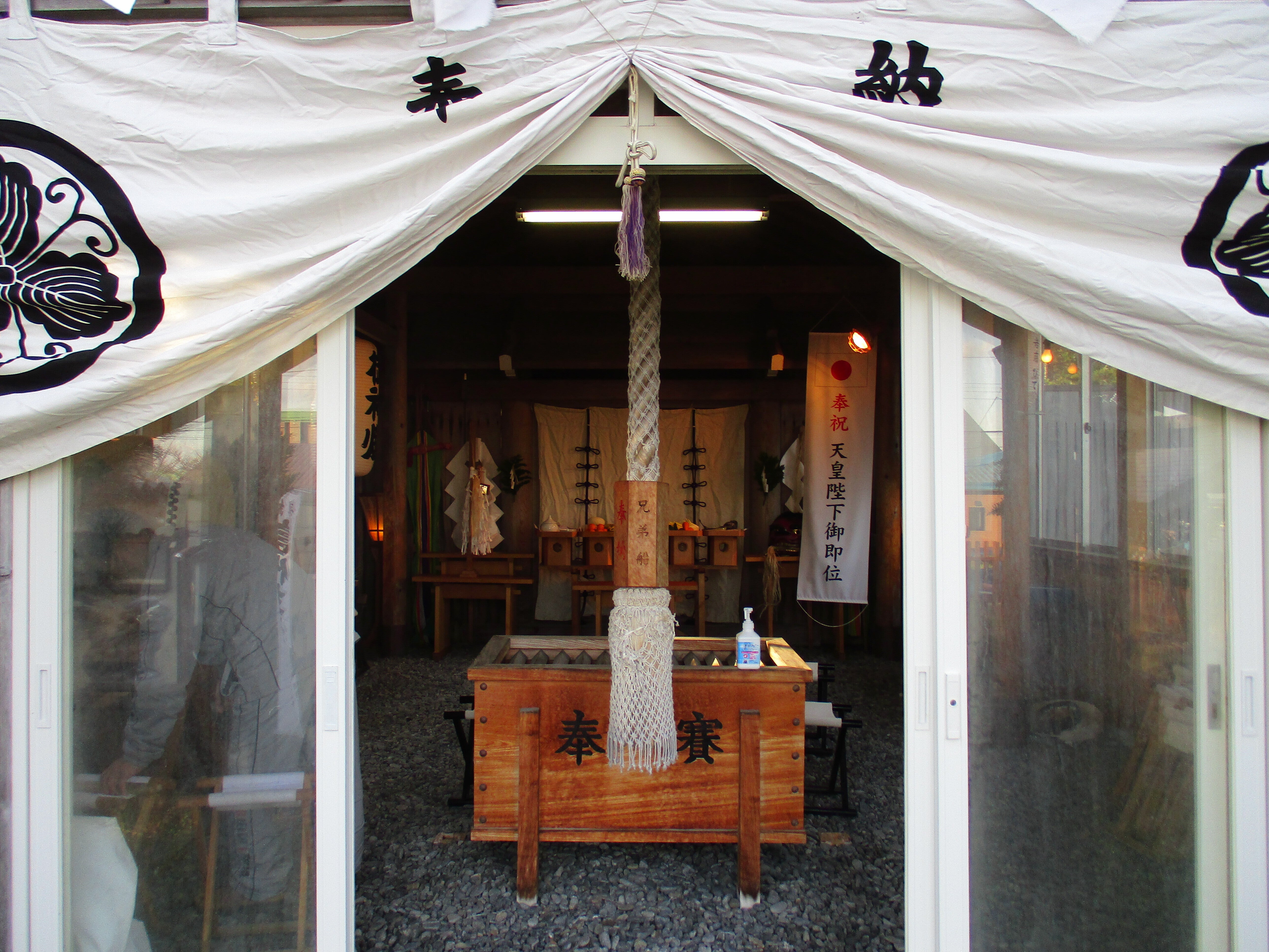 今晩は、歴史を刻みました。社務所の前に掲げたのは支援者のお陰で建設出来ましたを伝える為に。明上雅孝。令和4年の5月12日から7月30日までのクラウドファンディングを。キャンプファイヤーですよ。やり遂げたことを。