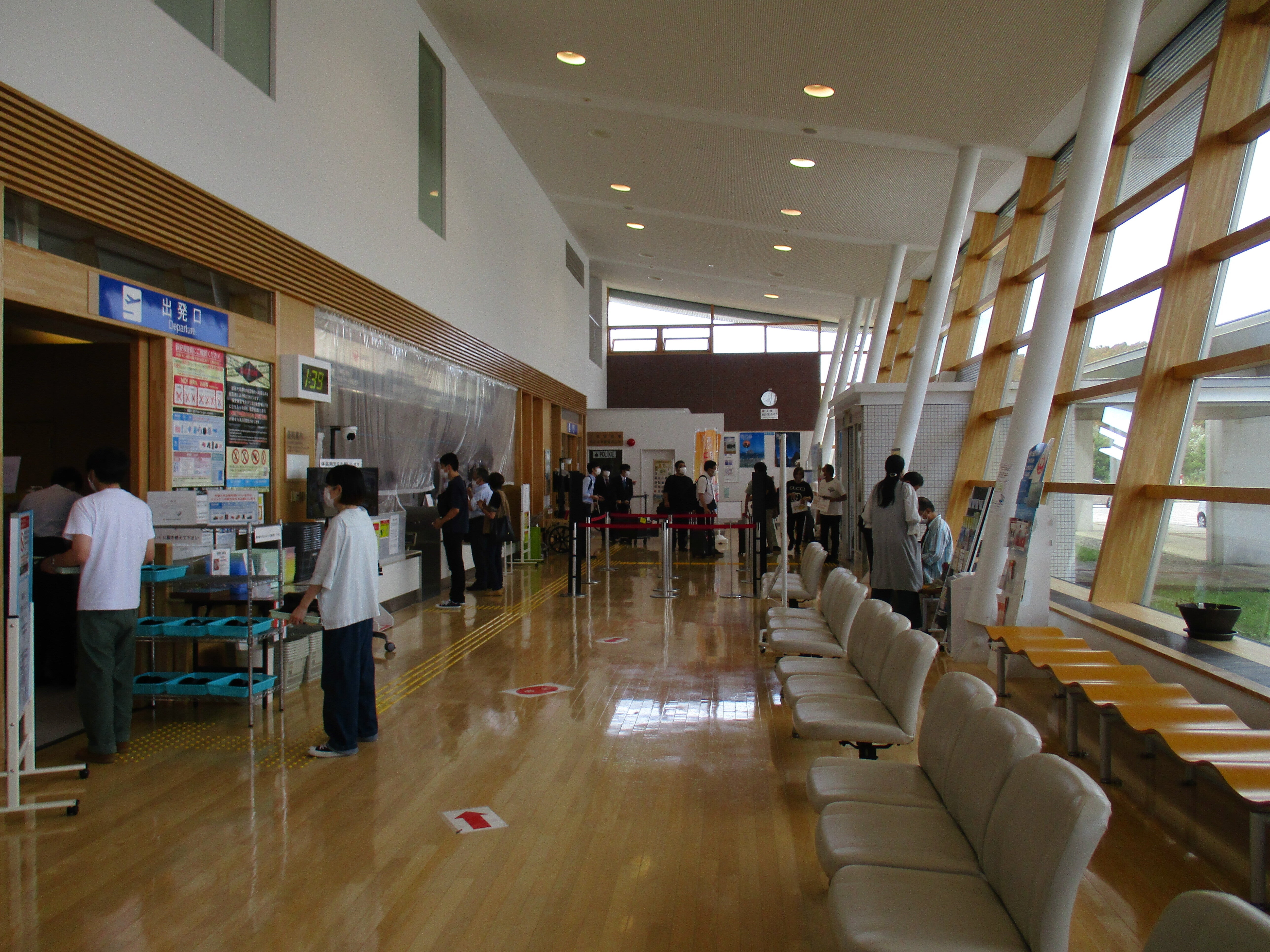 こんにちは、奥尻空港のなかですが、ようやくエックスれいが着きました。荷物の開放がないので安心ですね。明上雅孝。勤務する人を探しています。人口不足です。どの企業も。