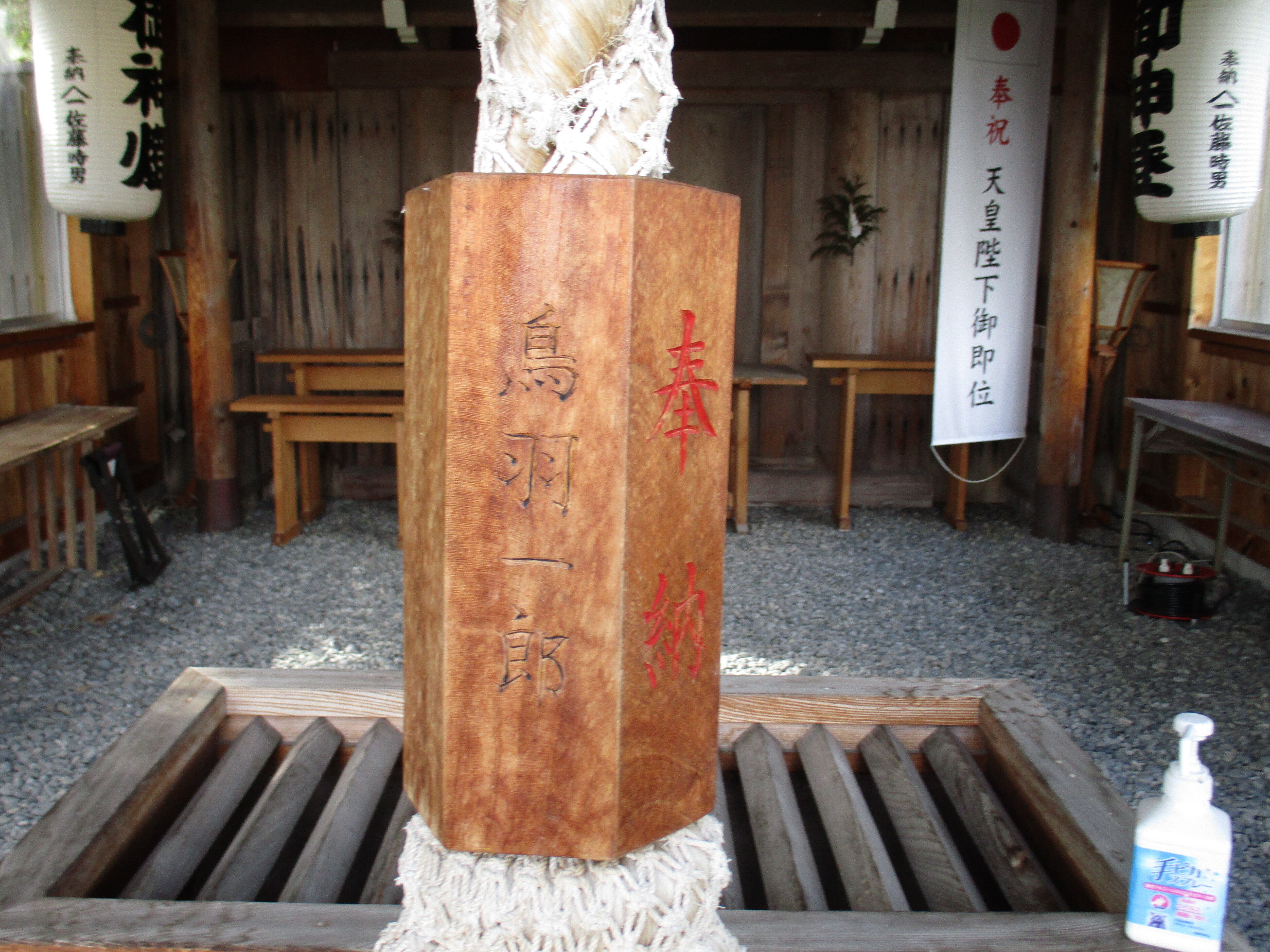 こんにちは、備品で待つのは2つの提灯を待つだけです。ビニール製にしました。社務所内に高額支援者のお名前も掲示し、社務所前に歴史を刻みました、建物のクラウドファンディングのお陰での。活動報告も3300回を超えています、今度は魚のメールもします。そして海からの、奥尻島も映します。明上雅孝。