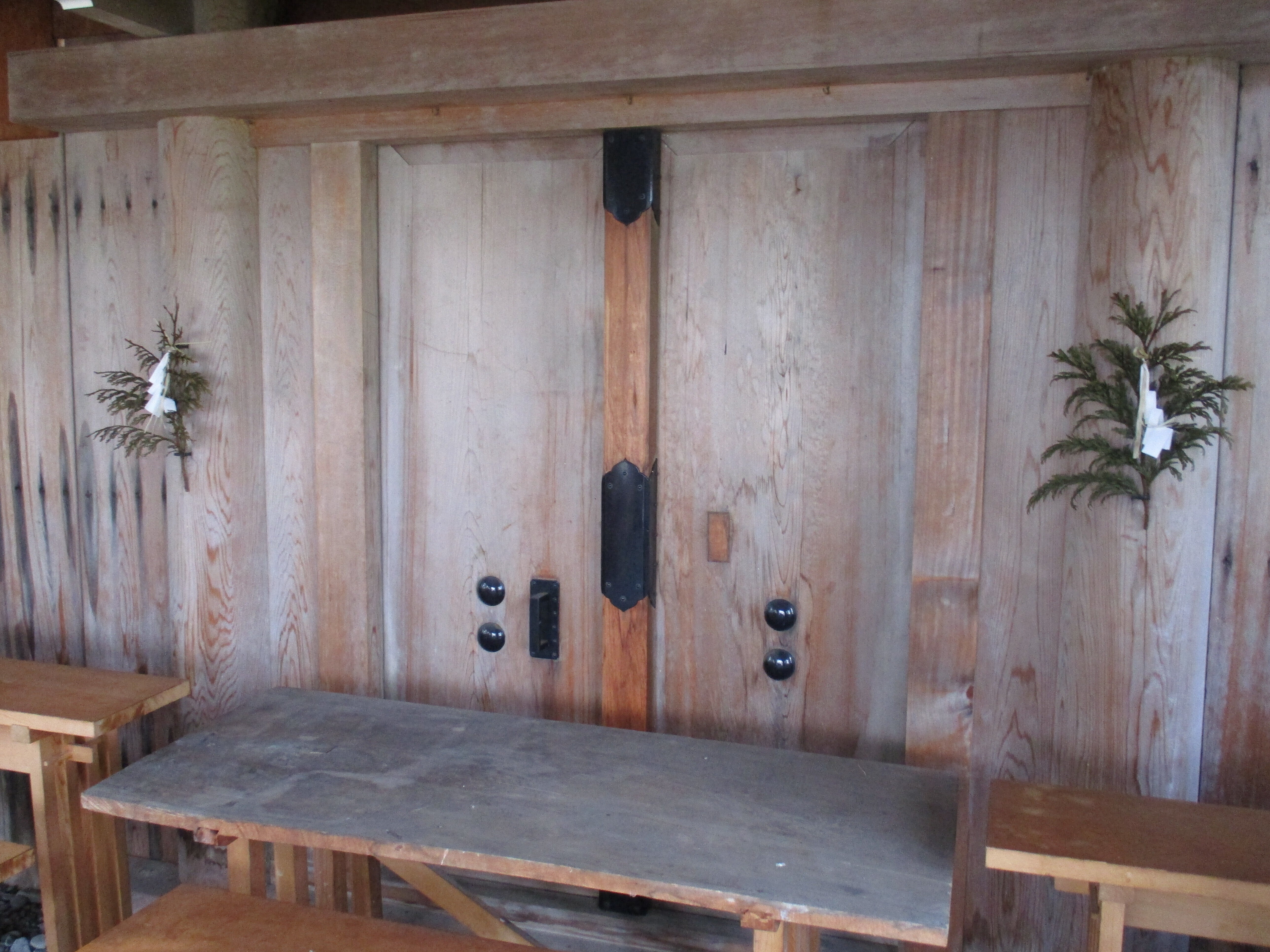 こんにちは、中に入ると大きな扉です。目の前に月讀み宮の扉が大きく見え感動の一瞬です。伊勢神宮の式年遷宮で島に頂きました月讀み宮が。平成7年の出来事です。28年が過ぎました。地震災害から30年が経ちました。建物の老朽化が目立ちます。日本に一つの財産が。明上雅孝。