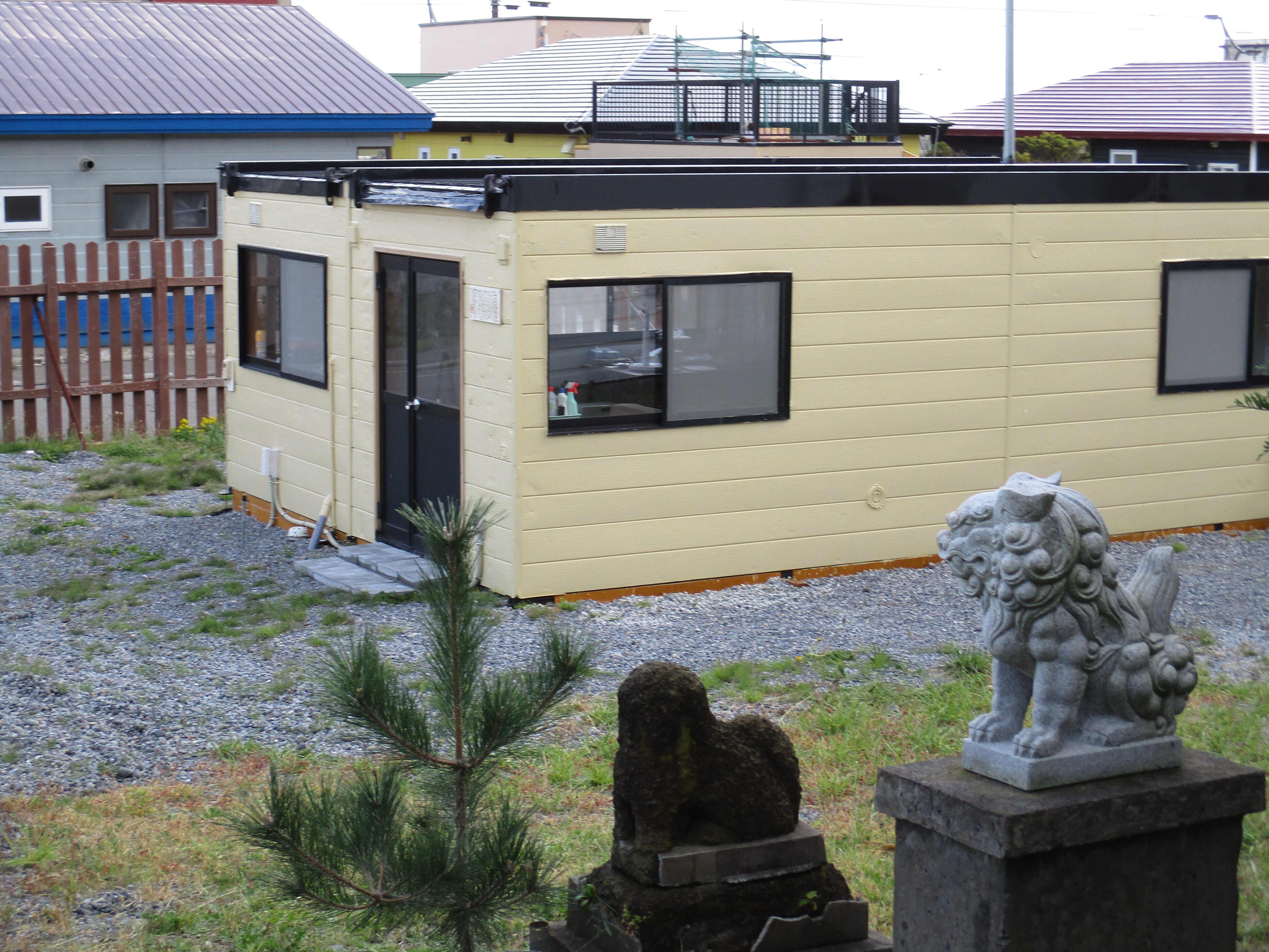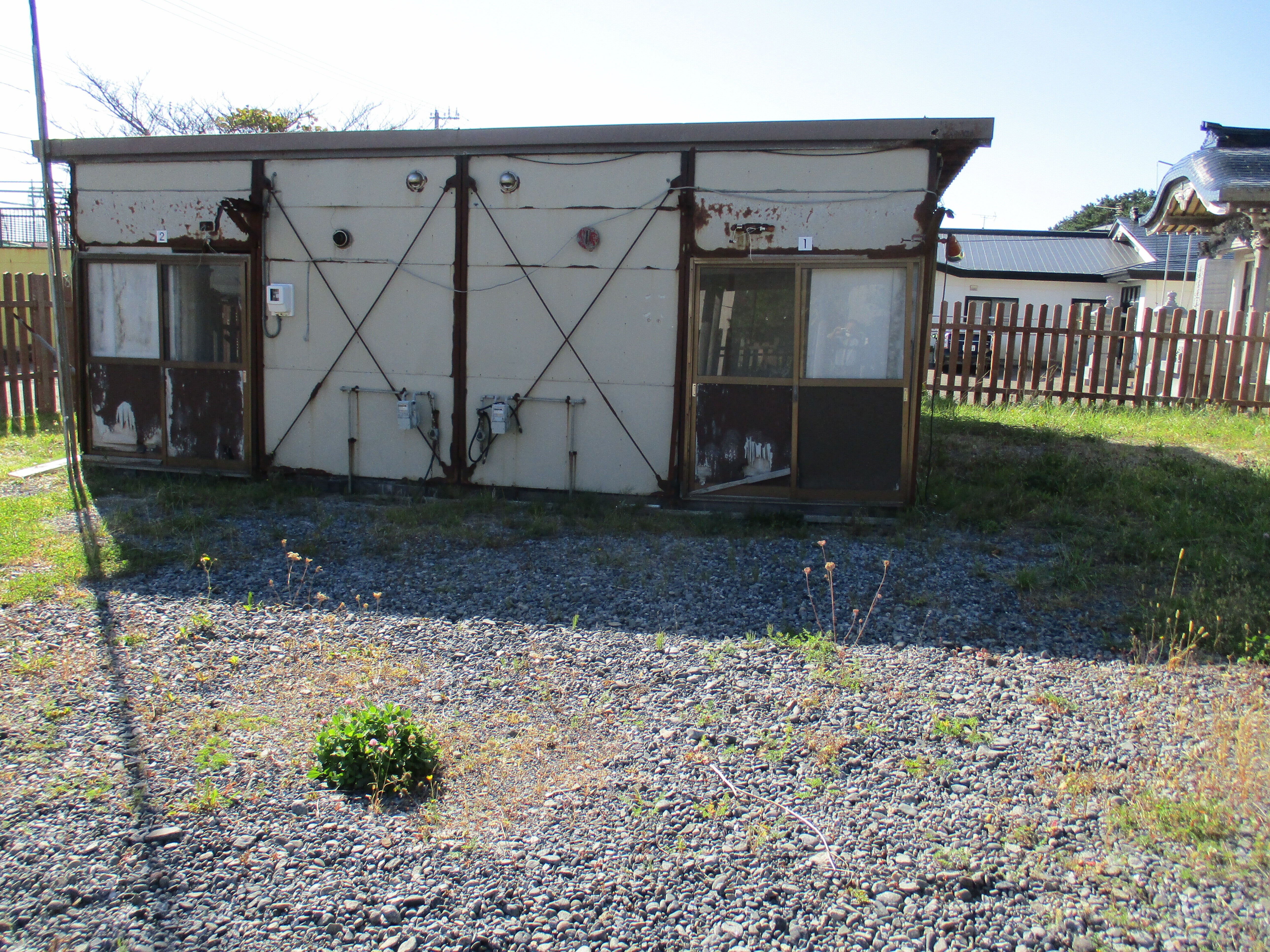 こんにちは、思えば崩れる寸前の前の社務所の姿です、8月には新しくなりました、12坪のコンパクトですが、前は18坪の仮設住宅です。地震災害から30年が経ちました。街は衰退しています。人口も今は半分の2300人ですよ。高齢化率は、40パーセントを超えてます。明上雅孝。