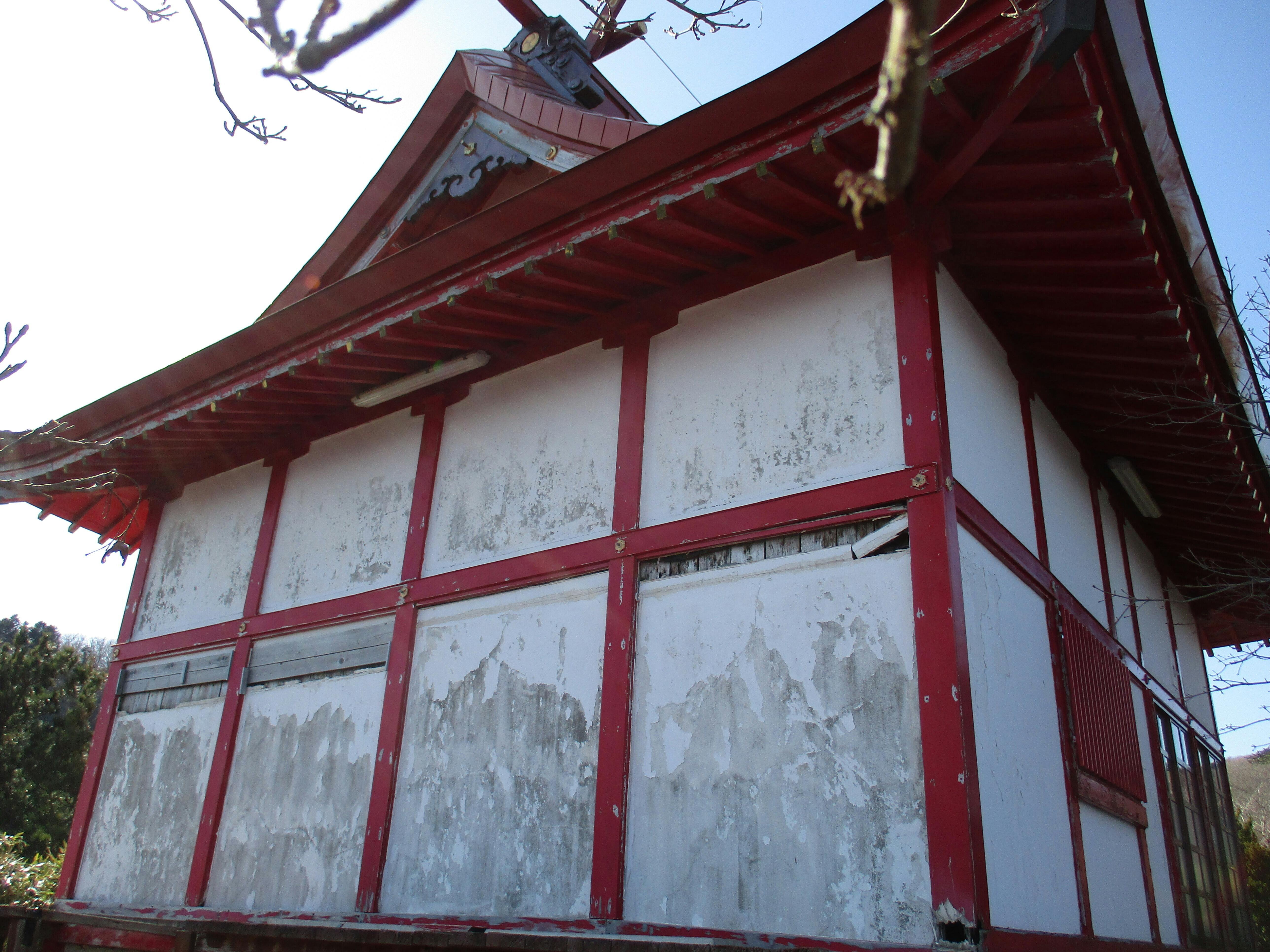 こんにちは、宮津弁天の壁も塩害で痛みが激しいです。今日の会議では大工さんの見積もりにより、金額の予算内での修理に進む事にしました。地元の材料を購入後大工さんの力を借りる予定です。地元には大工さんは一人ですが。心良くお受けしてくれたら嬉しいです。万が一大工さんが困難の時は、活動報告にてお知らせします。明上雅孝。