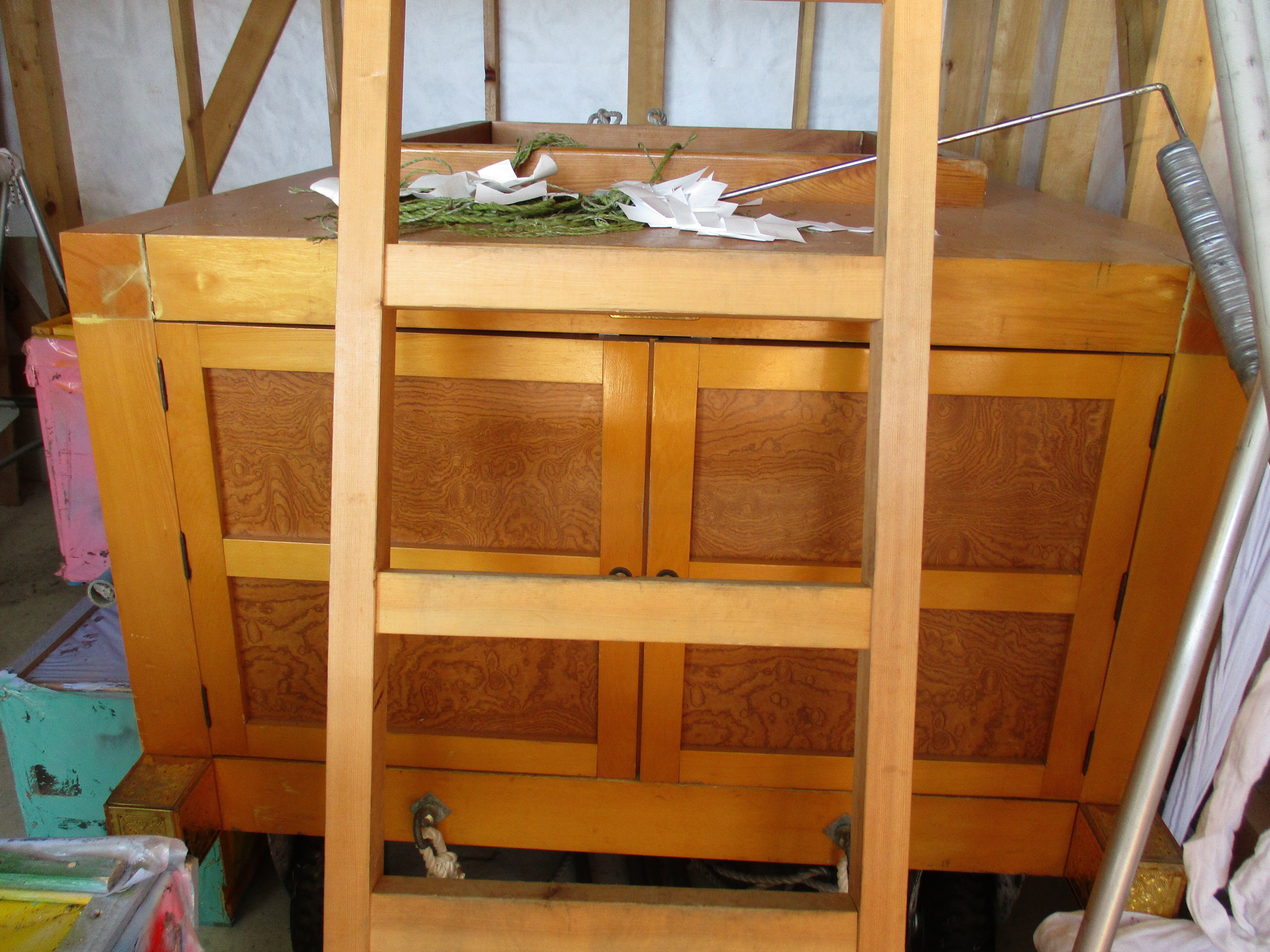 こんにちは、お神輿の担ぎ手の少ない時に使う台車です。平成13年に製造元の、富山刑務所より購入しました。これからは若者も少なく、台車を使う事が起きる予想です。人手が10人いれば、動かせますよ。明上雅孝。お神輿の祭りの参加の時に。