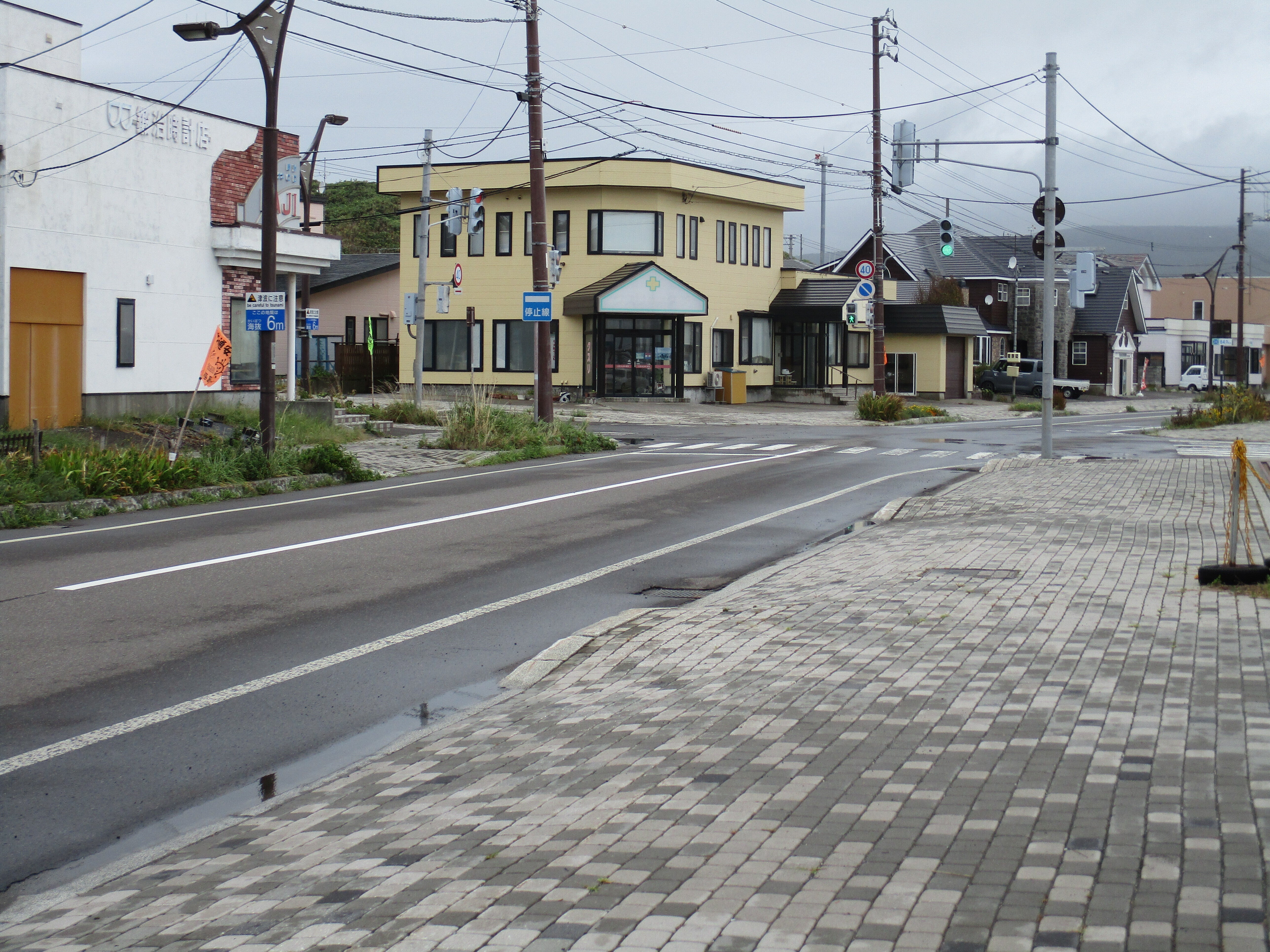 こんにちは、青苗の商店街です、自動の信号機はここだけですが、少し坂道になっています。雪になると、ゆっくりでも車が止まるのが、きついです。アイスバーンになりますので。明上雅孝。