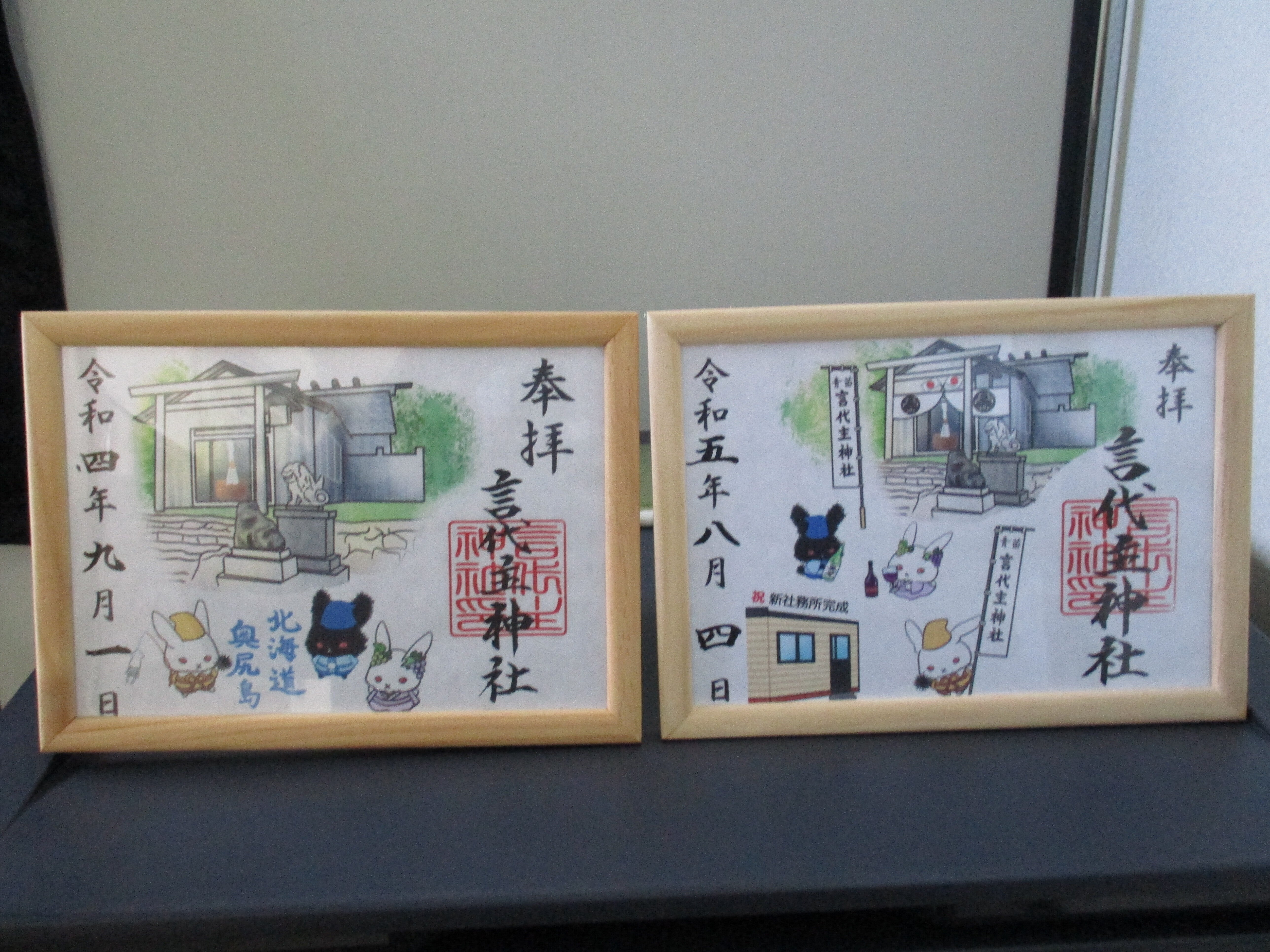 今晩は、琥珀アンダーソンさんの奉納です、2枚共に。社務所も完成し、右の完成の御朱印を返礼してます、1口3000円に対して1枚です。住所、お名前をお知らせください。郵送させていただきます。神社の維持費に使います。地震災害から30年が経ちました。段々と壊れてきます。周囲が。明上雅孝.