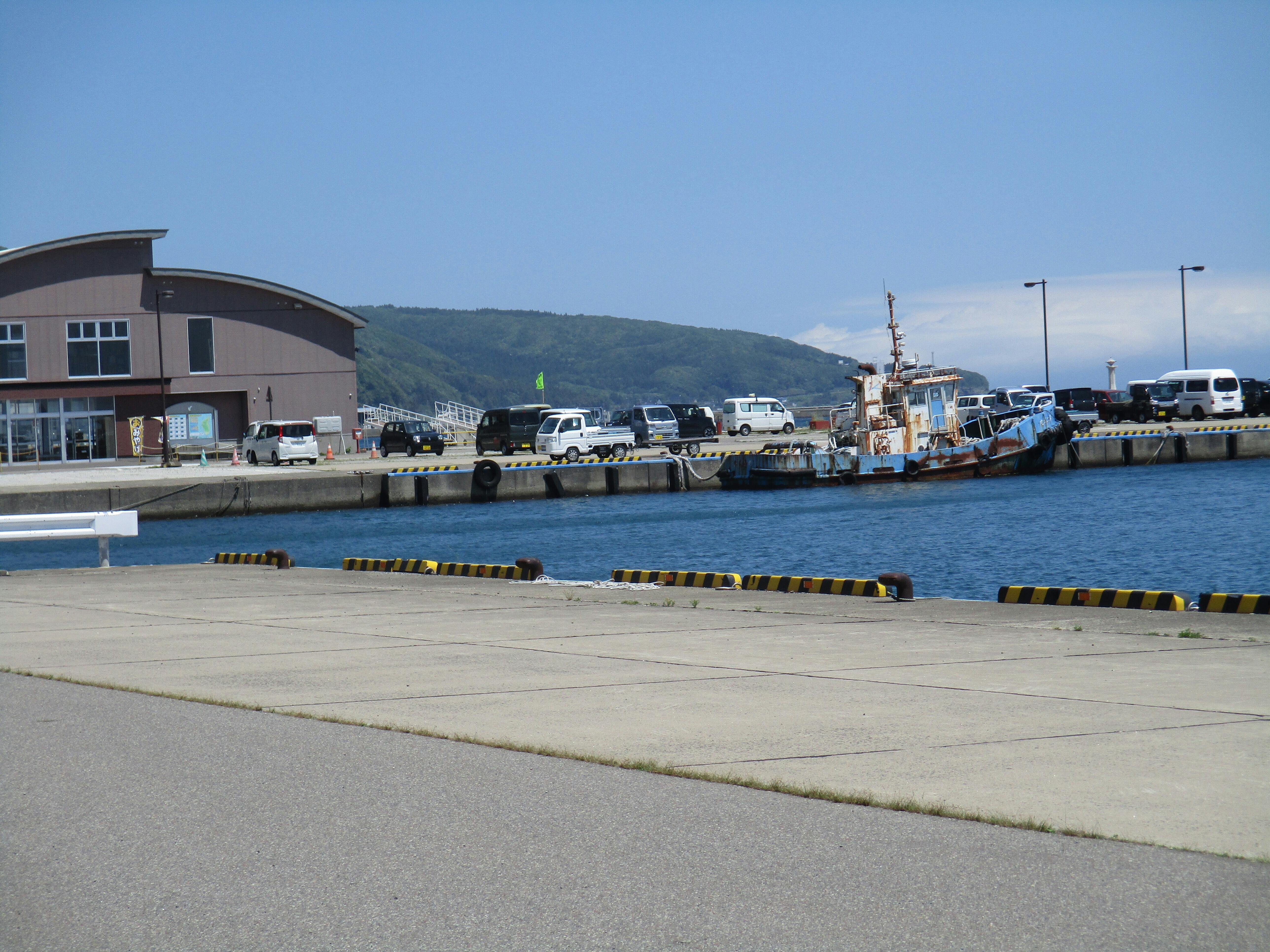 おはようございます!フェリー乗り場が見えています。港の駐車場は無料です。フェリー乗り場は奥尻港にあります。青苗港は漁港なのでフェリーは入りません。青苗から奥尻港までは18キロあり30分かかります。センターラインのないところもあります。明上雅孝。島は晴れの22度です、これから暑くなります。今日もウニ漁をしています。観光客が御朱印を購入しています。神社の維持費に使います、感謝です。明上雅孝。郵送もあります。090-5984-1384、明上雅孝。