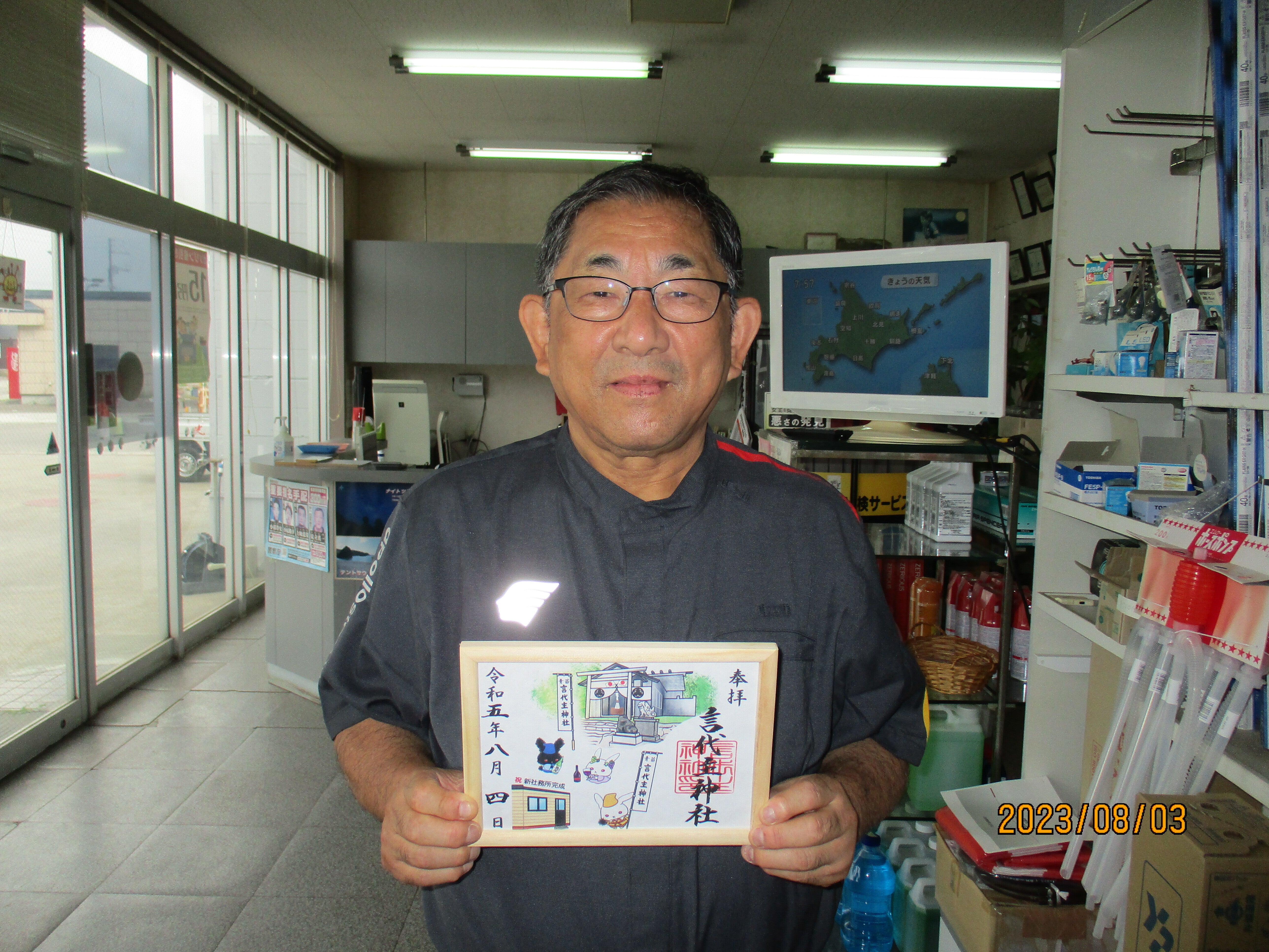 こんにちは、例大祭の風景です、希望している御朱印を送ります。支援金を募集しています。1口3000円で1枚を送ります、郵送させていただきます。住所、お名前をお知らせください。口座振り込みになりますが。社務所の完成の御朱印ですよ。琥珀アンダーソンさんの奉納です。人気が高まっています。島に来れなくとも記念にしてくださいね。明上雅孝。月讀み宮さんが島にあります。お伊勢参りも奥尻島からお願い致します。神社の維持費に使います。