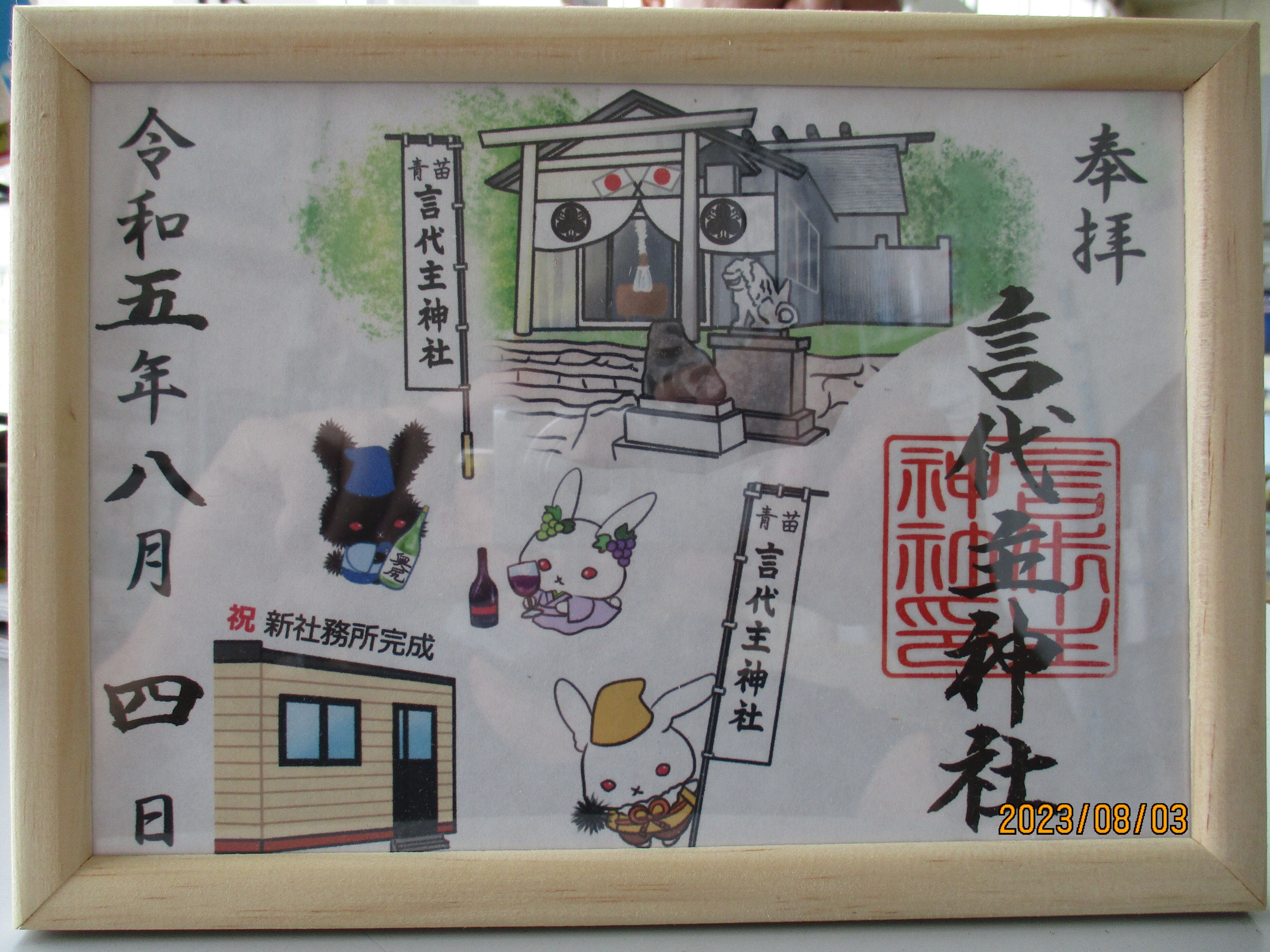 今晩は、この度琥珀アンダーソンさんの奉納が有りました。社務所の完成の御朱印ですよ。島に来れない人のために、1枚3000円の支援金で郵送させて頂きます。2枚では6000円という意味ですが。残りは神社の維持費に使いますので、ご了承下さい。090-5984-1384、明上雅孝。
