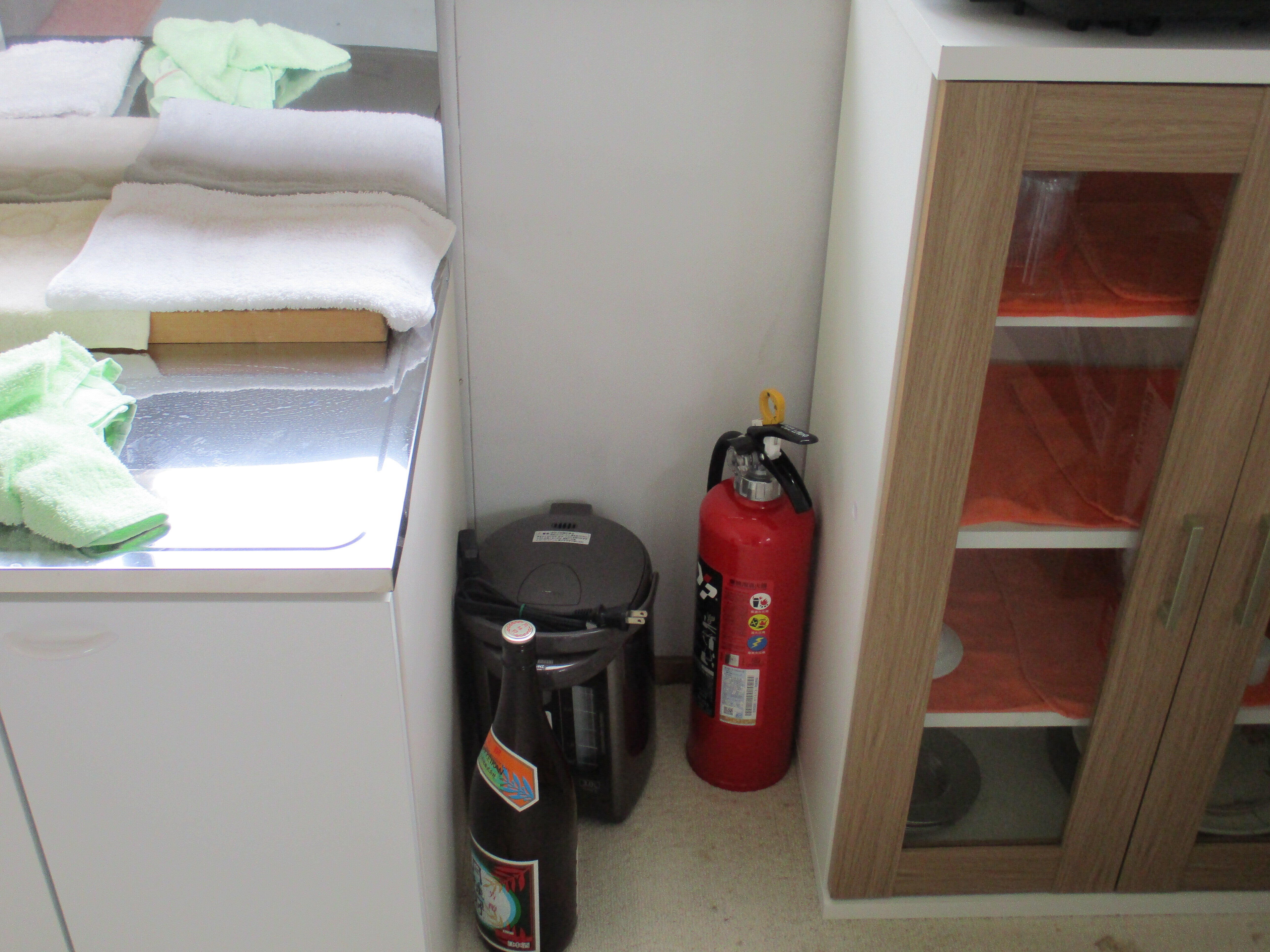 こんにちは、報告ですよ。社務所の備品ですが、電気ポット、消火器、食器棚もありました。生活は出来ます。明上雅孝。