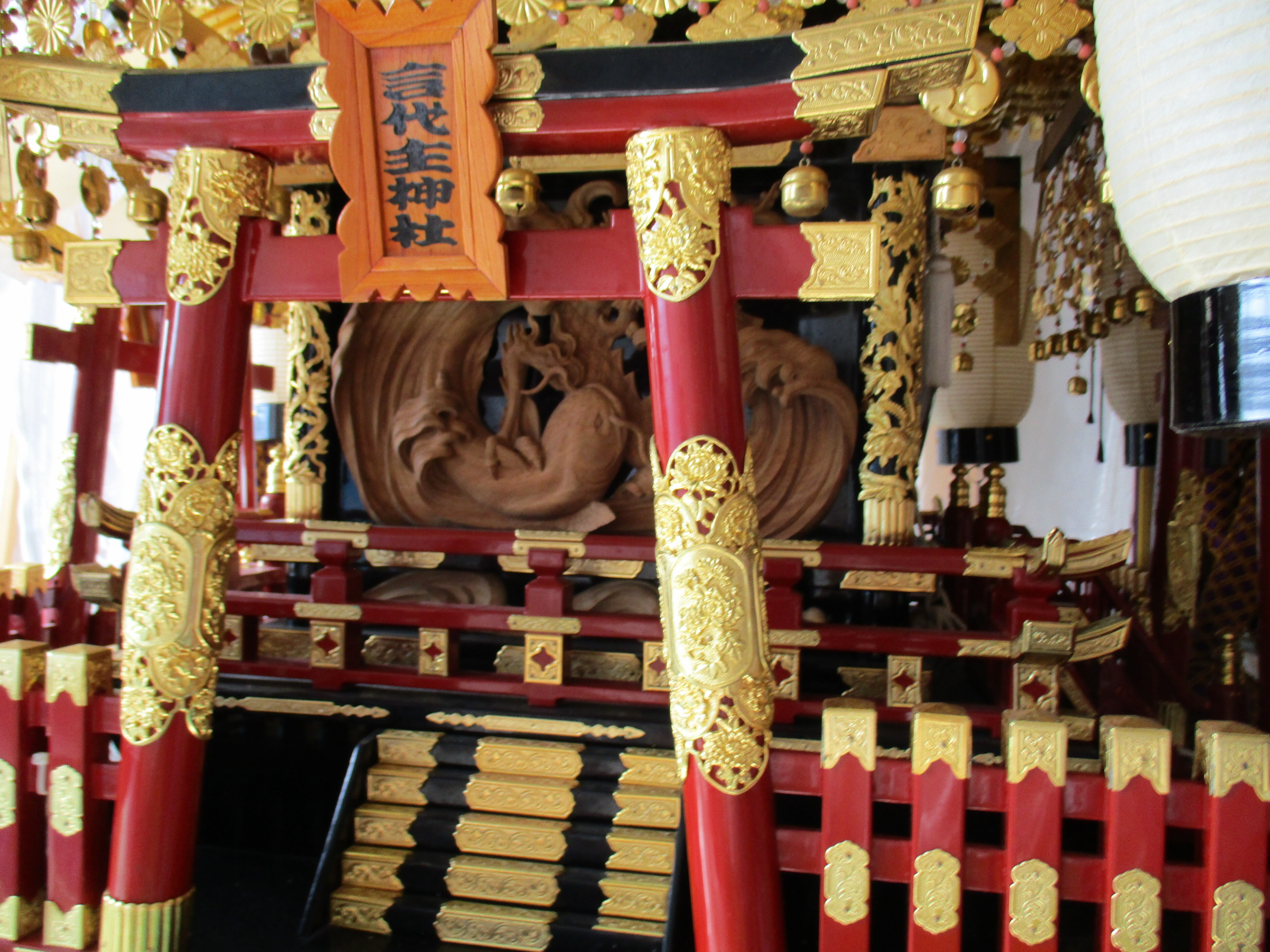 こんにちは、富山の刑務所より購入しましたお神輿です、平成13年に島で買い、お祭りに参加しました、重さが600K、担ぎ手30人が必要です。南部白雲氏による彫刻入りですよ。ナマズを龍が抑えています、地震を起こさぬように。850万で台車付きで購入しました。神輿保存会の所有です。明上雅孝。