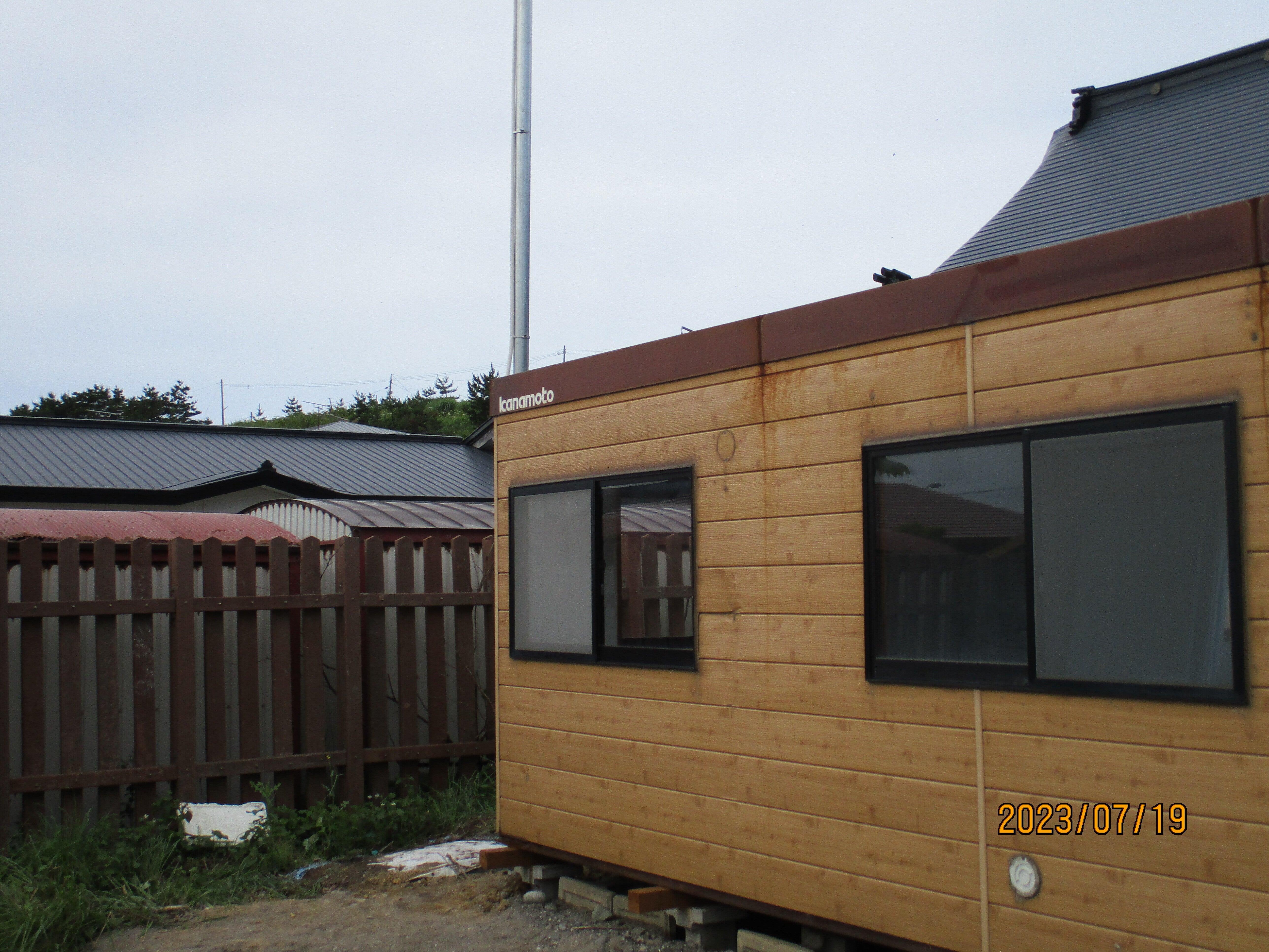こんにちは、18日に電気のポールを建てました、これで電気も通り水道の水も完了です、中に入れるソファーなどは、私の家からや、有志の方の家から持ち込みします、中古品ですが。お休みの場所も作ります、会議もありますので。明上雅孝。