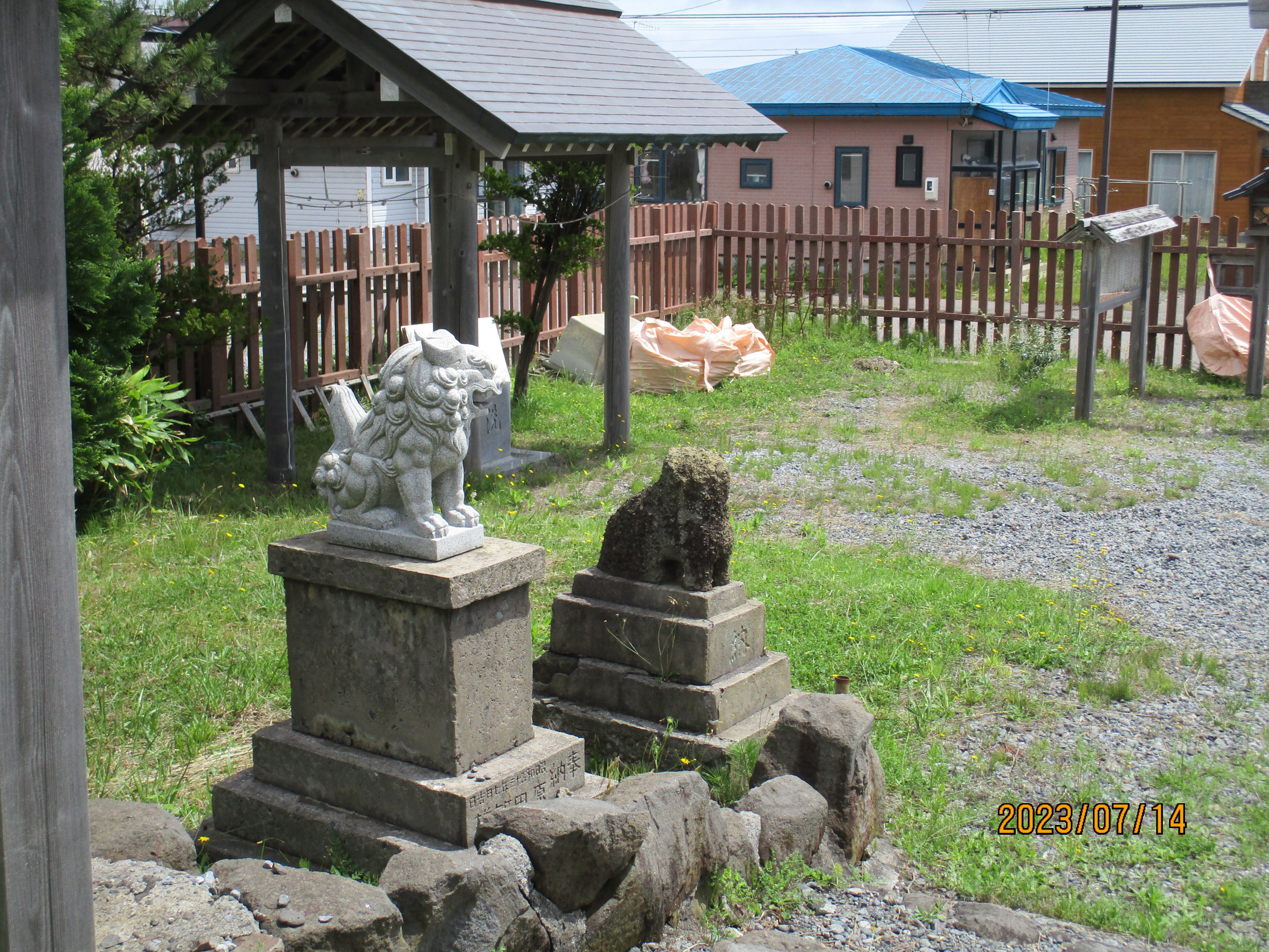 こんにちは、月讀みさんの前にある、古い狛犬、新しい狛犬、2つ並んでいます、古い方は30年前の地震災害にも負けずにそのままの姿です。明上雅孝。