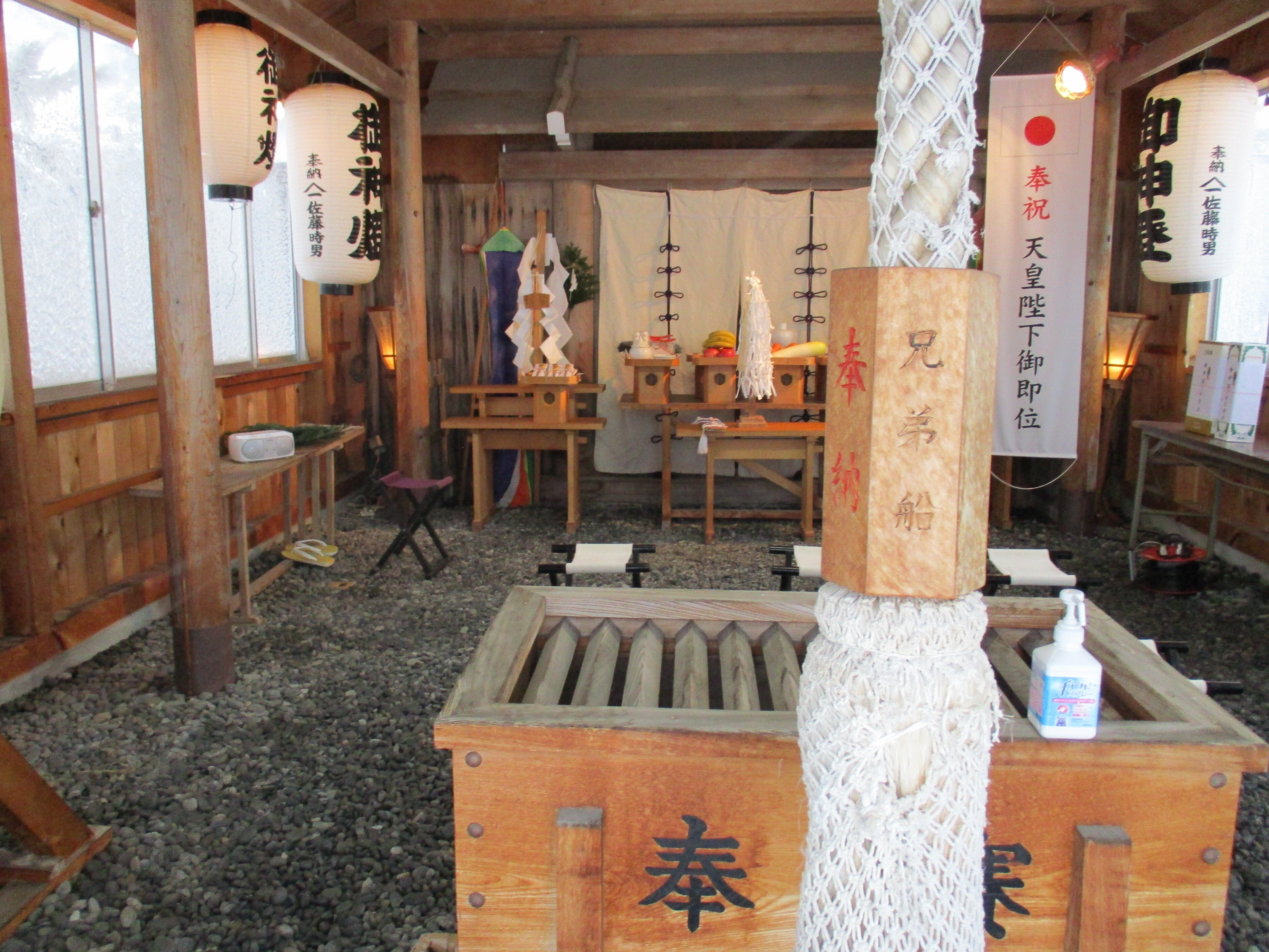こんにちは、12坪のモバイルです。釣り合いの取れる色合いにし、石砂利を敷き詰めます。明るい話で、さい銭箱の場所を聞かれました。中に入り鳥羽一郎さんの鈴を鳴らしてから下にあるさい銭箱に。音が嫌いなさい銭箱ですので、お札のお賽銭をお願いいたしますと。の事。お笑いください。神社の維持費に使います。後世に残すために。災害から30年がたち、神社、神輿、御朱印、社務所も完成し、7月からの定期観光バスの観光コースにも入りました。安心しています。ここまで来るのには30年かかりました。私も73歳の老兵です、年を感じますが自己満足ですが、幸せものです。整備完了もまじかですので、参拝をお待ち申し上げております、明上雅孝。