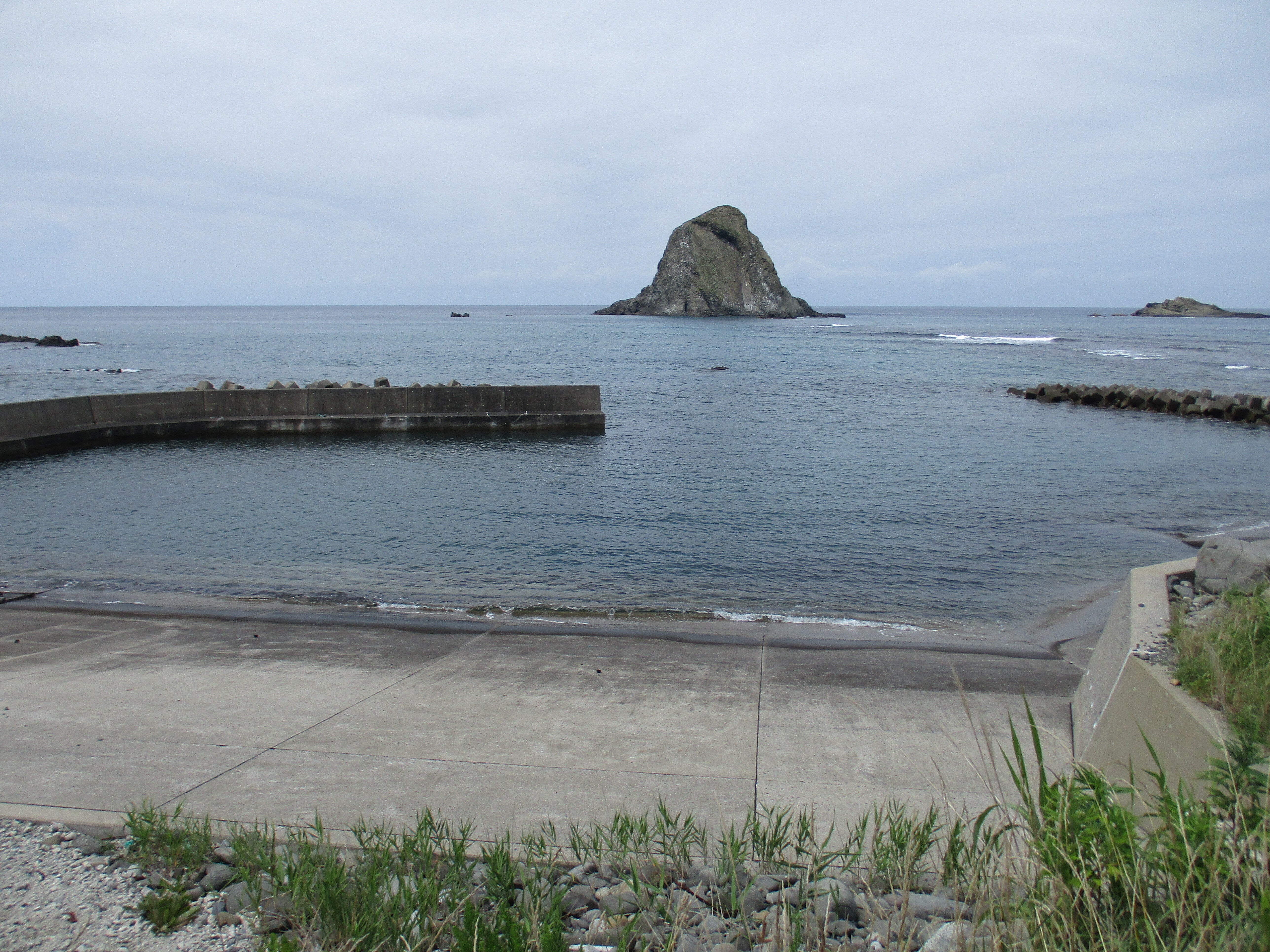 こんにちは、島の西海岸は、岩場でいろいろな名前の岩があります、見えてるのは無縁島という岩です、人は住んでいません、男女の恋の物語の島と言われてます。明上雅孝。