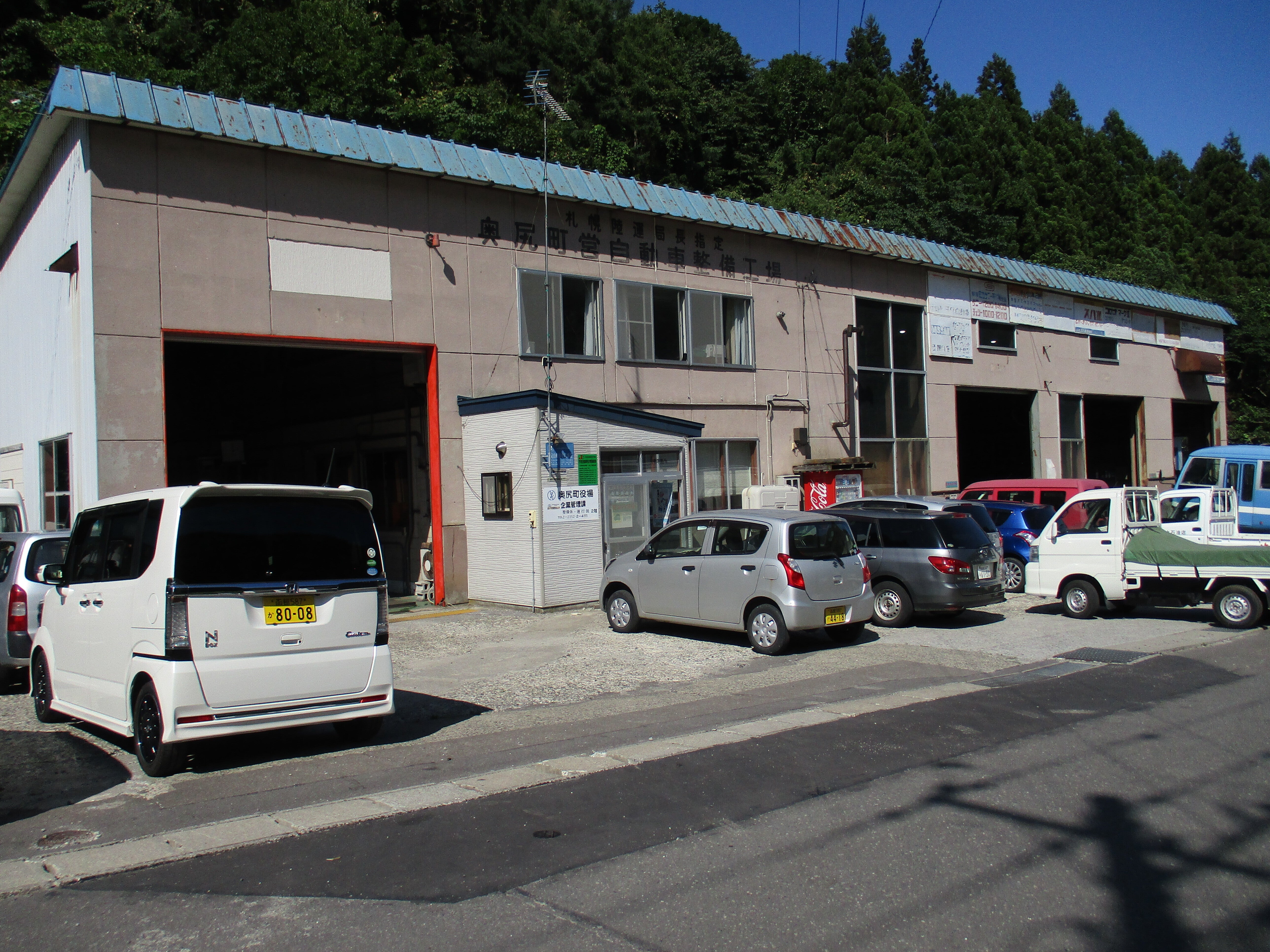 こんにちは、町で一つの整備工場です、働く人は町の職員ですよ。車検が出来るのは島ではここだけですよ。年間で600台ぐらいの用です、設備が古いので今は更新中です。島は物損事故が意外と多くあります。板金や塗装もここ出来ますので助かります。赤字の経営ですが。明上雅孝。