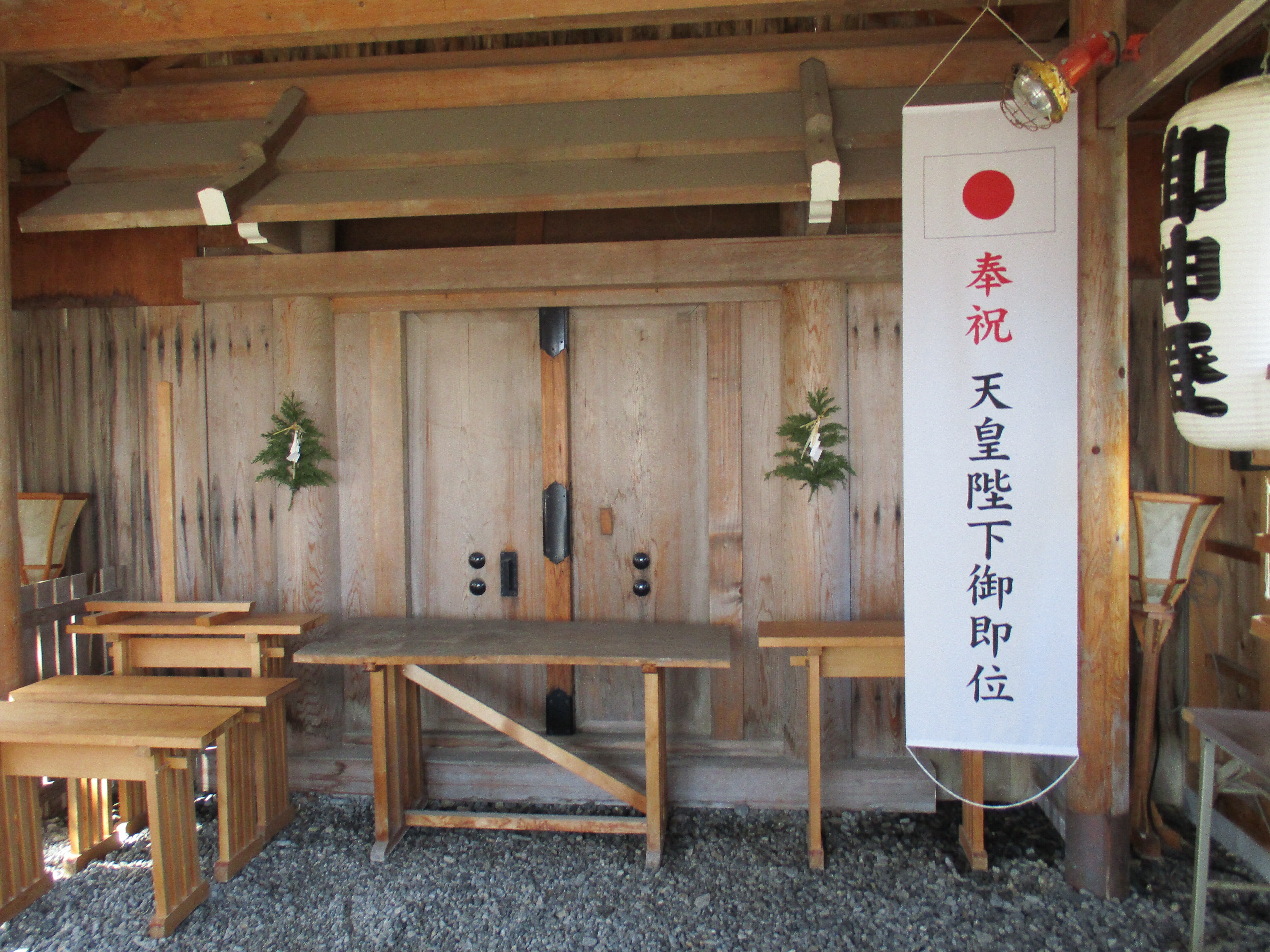 こんにちは、見えます扉は、平成7年に行われた伊勢神宮の式年遷宮で島にいただいた月讀みです。奥尻島の青苗の事代主神社の名前で青苗地区に建設されました、今年で地震災害から30年がたちます、材木一式は、日本で奥尻島のみではないかと思われます。他の地区は柱1本などと言われてます。島には価値あるものと認識しています。5月には神社の整備も完了予定です。今年はお伊勢参りを島からの出発をお願いします。お待ちしています。お願い、5月31日まで支援金を募集しています、支援金の40パーセントほどをお返し致します。ワインやお酒も返礼しています、1万円からの返礼となりますので、礼状、由緒、御朱印を別便で送ります。御朱印は大きいサイズ1枚、小さいサイズ1枚を送ります。詳しくは090-5984-1384,明上雅孝。
