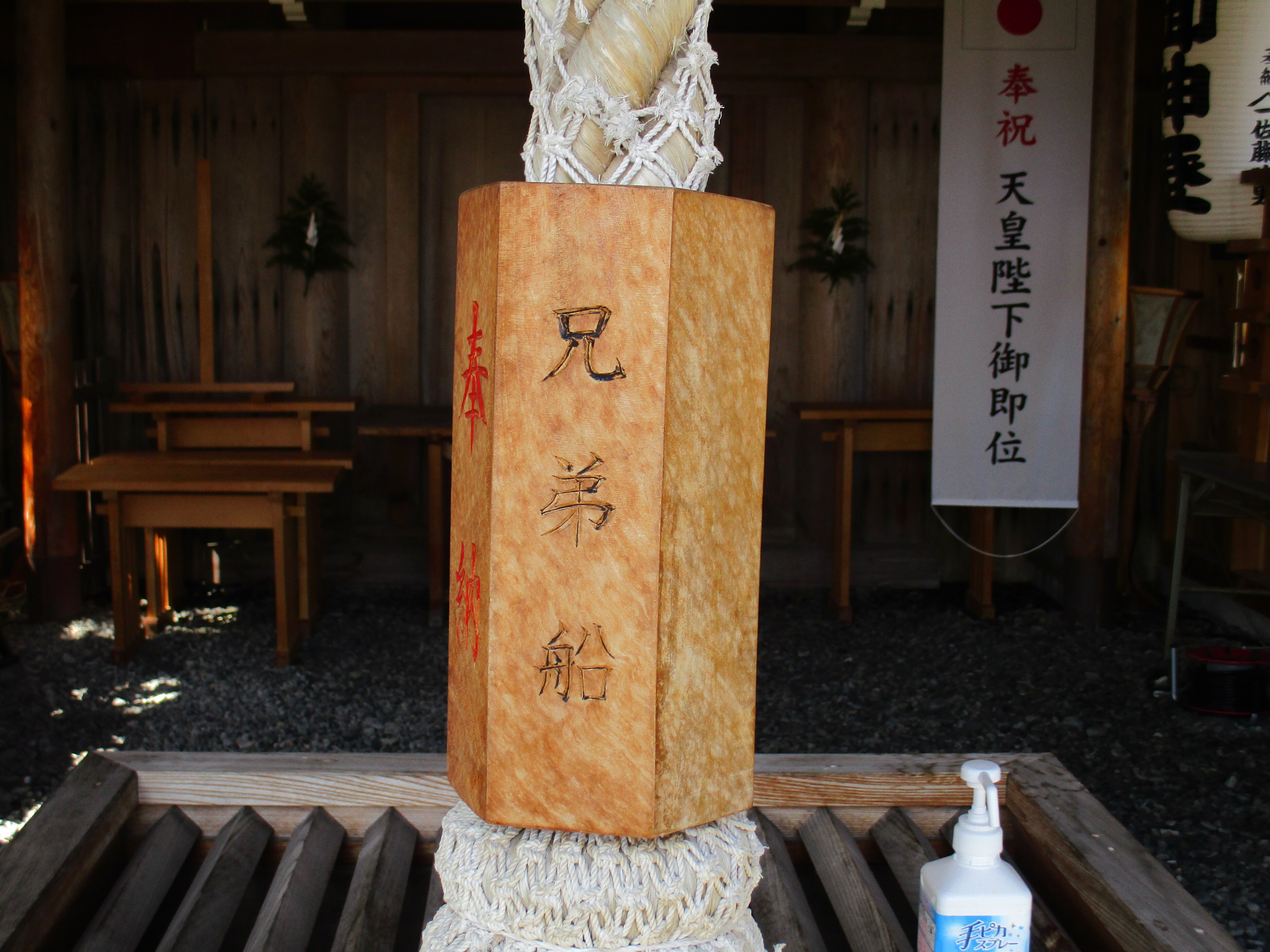 こんにちは、この鈴は歌手の鳥羽一郎さんから頂いたものです、青苗の事代主神社内にあります、災害の後に頂き、ヒット曲の兄弟船が刻まれてますよ。今年の参拝には是非、鳴らしてください。.ところで、島に宮司さんが来てくれそうですよ。噂では。神様はやはりお金ではないですね。私は信じます、お金ではないと。明上雅孝。