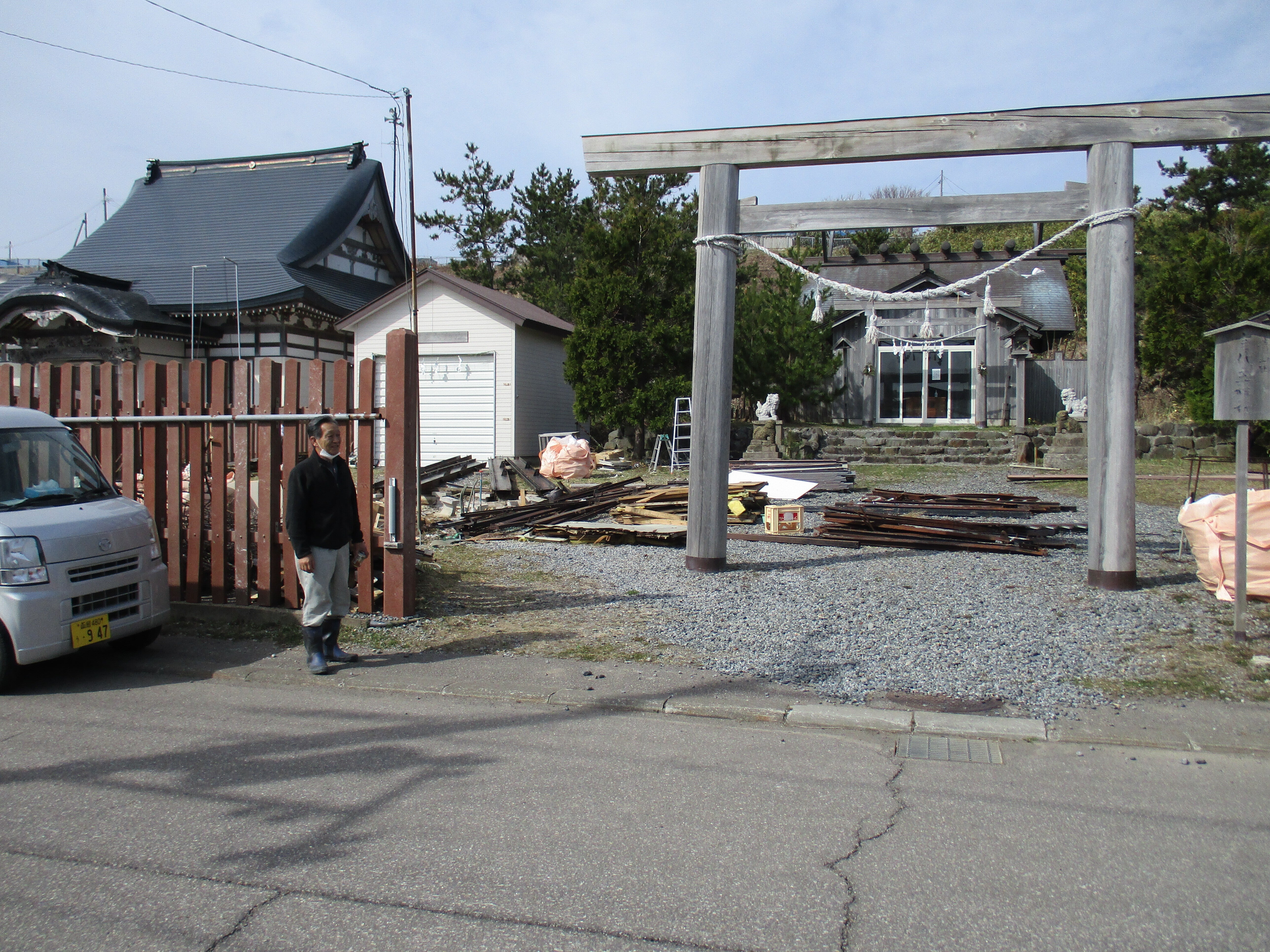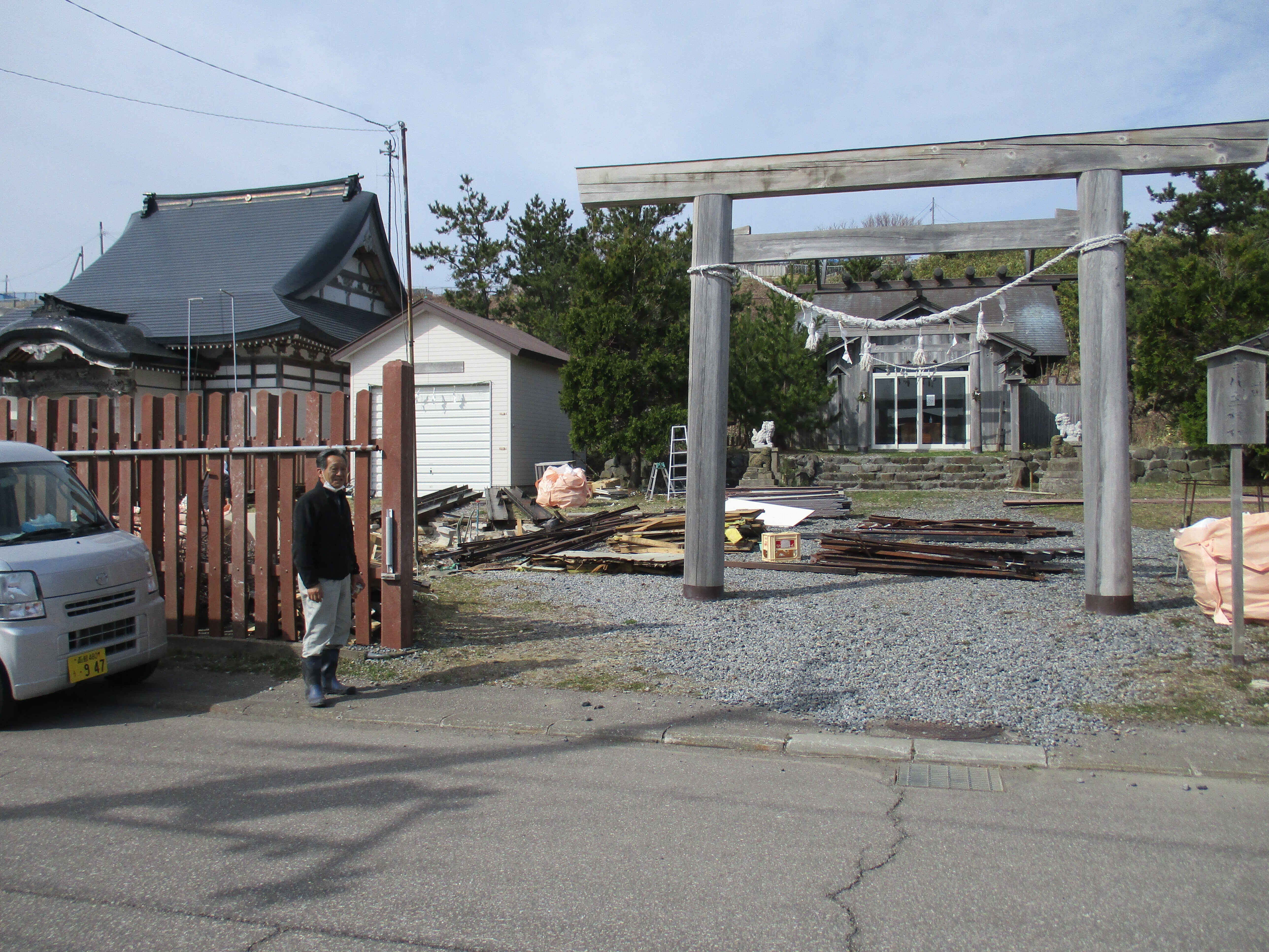 こんにちは、有志の一人ですよ。建物の解体を終えて疲れた顔ですよ、高齢です、廃棄物の30万の話で盛り上がりました、全部がかたずけば、青苗の事代主神社も景観が整いますよ。お伊勢参りを、島でお待ちします。明上雅孝。