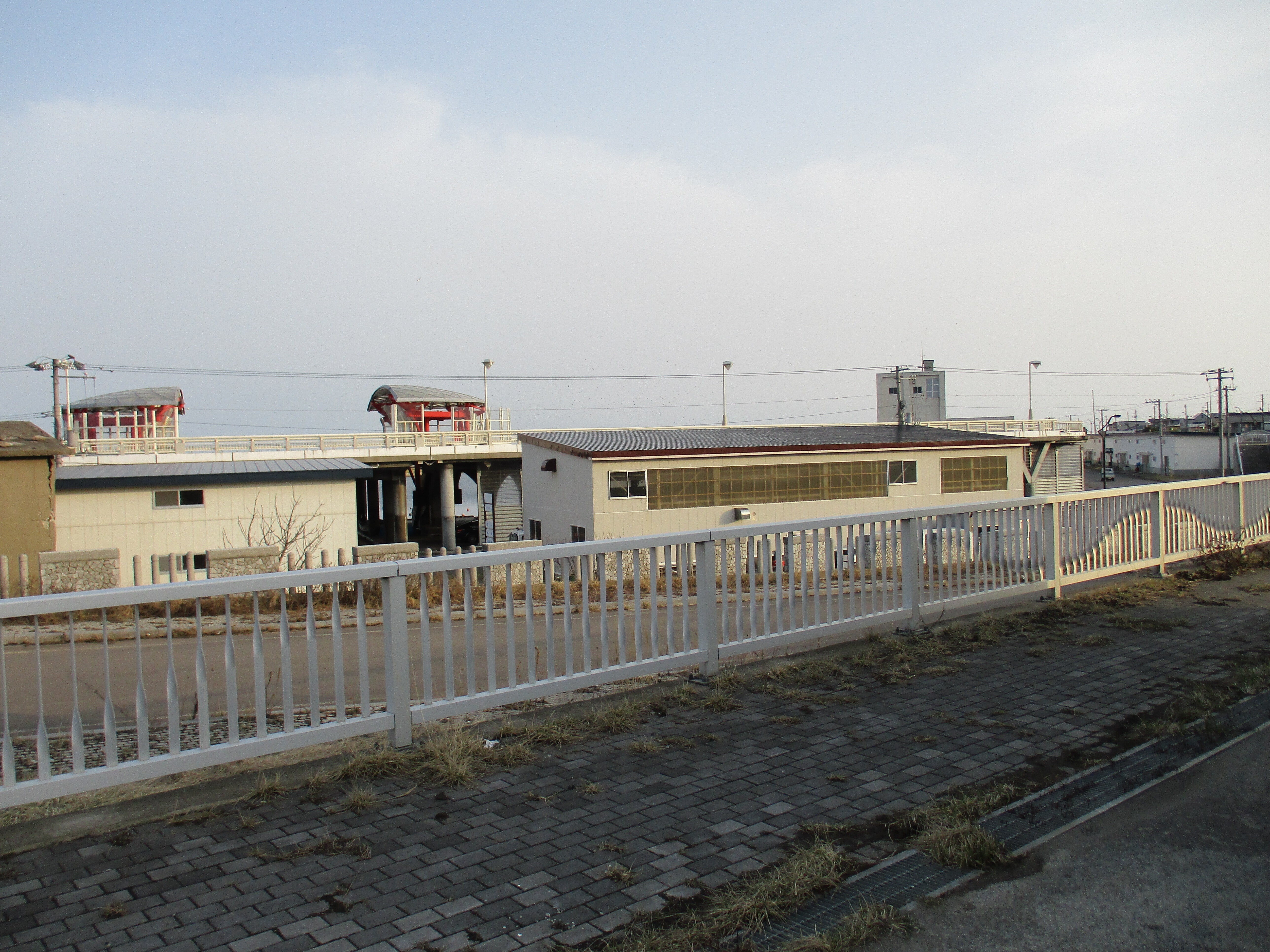 こんにちは、青苗の港の近くにある、うにむきの工場です。海抜6メートルの防潮堤の下に建てられています。土盛りを4メートルしてから、一般の家を建てました。工場などは、防潮堤の下でも、建てられます。明上雅孝。