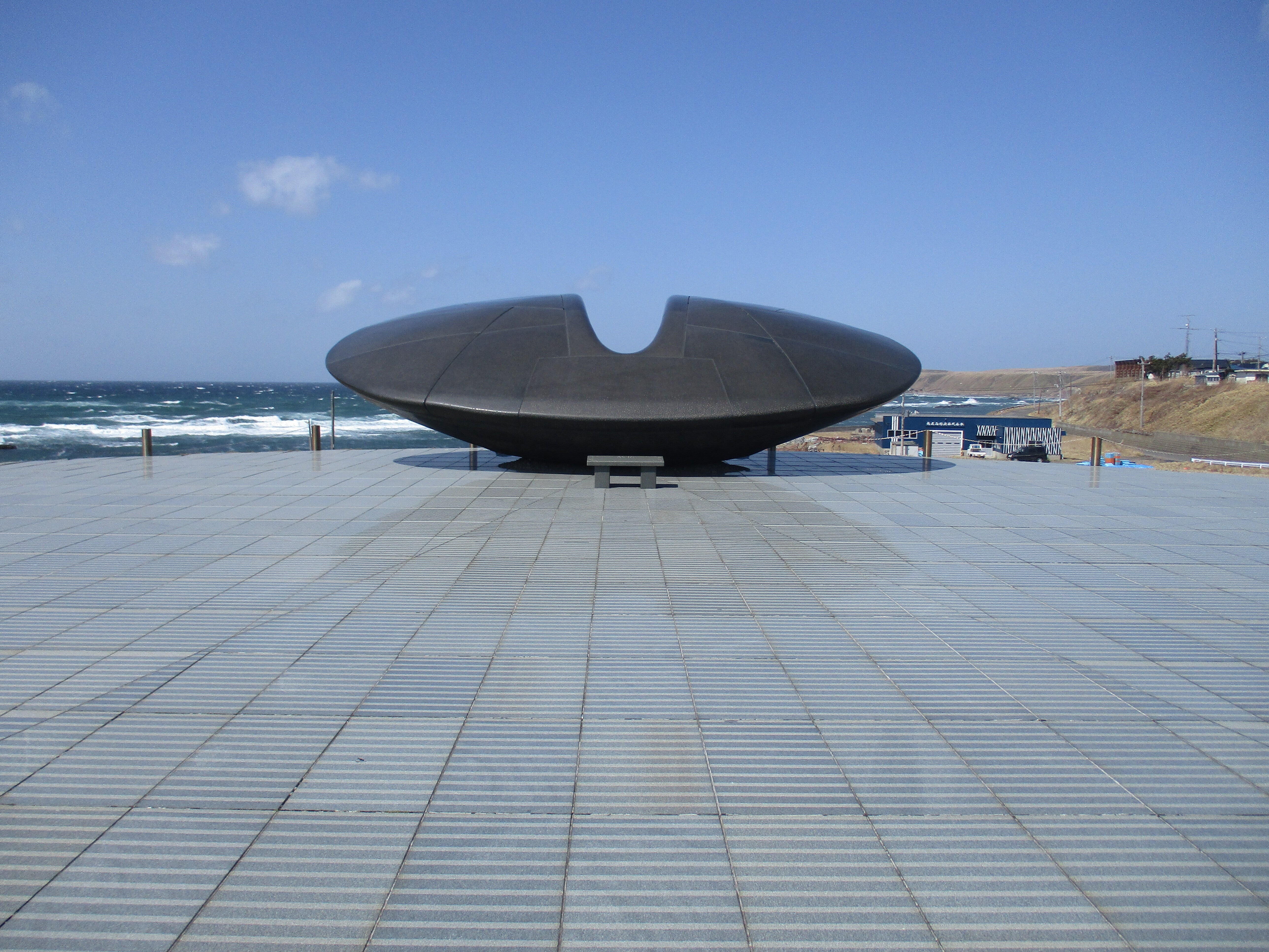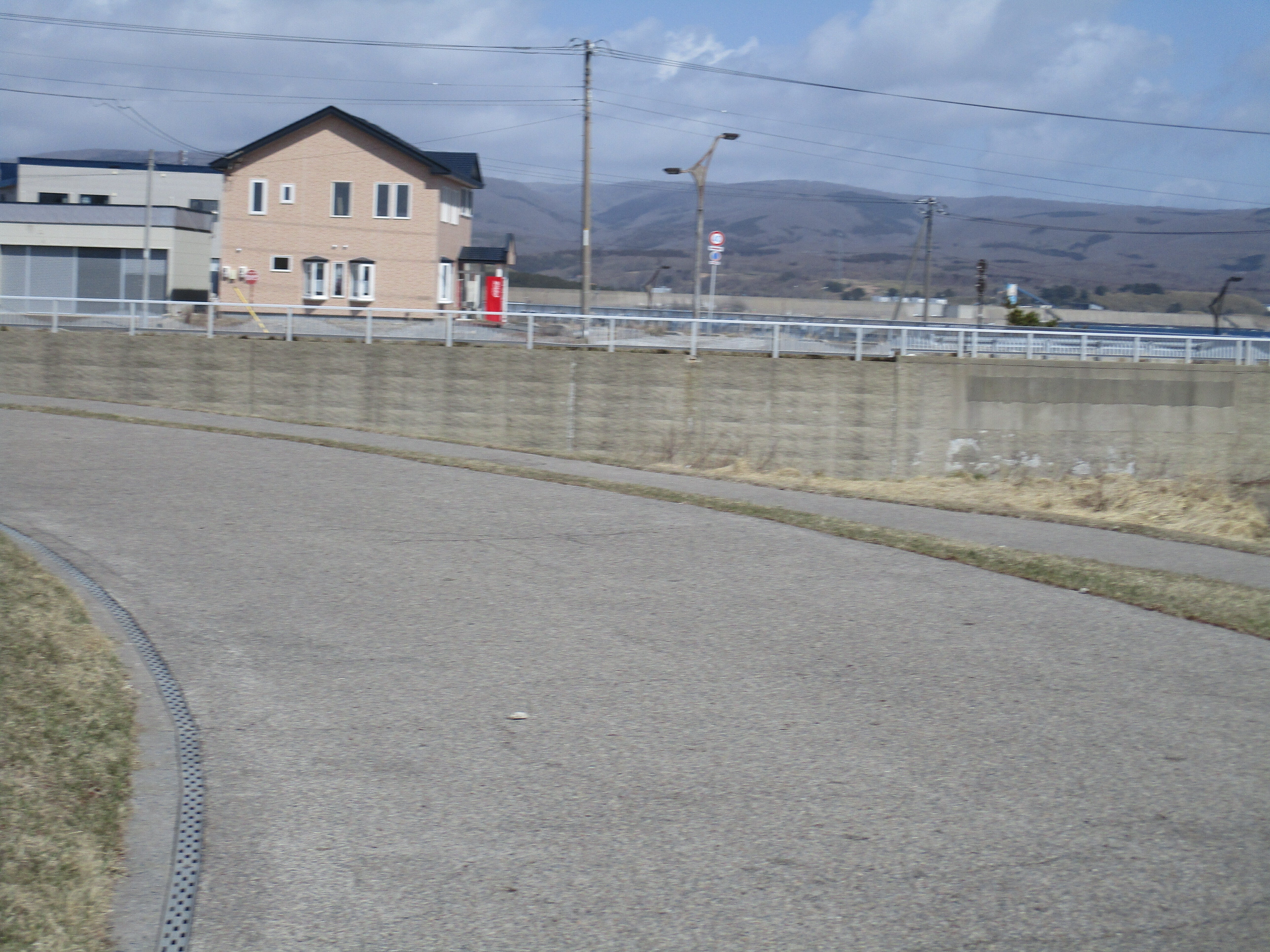 こんにちは、津波館の近くの建物の下をご覧ください、見えていますコンクリートは海抜6メートルの防潮堤です。津波が6メートルでしたので、復興は6メートルの防潮堤になりました。少し土盛りの後に住宅を建てました。明上雅孝。