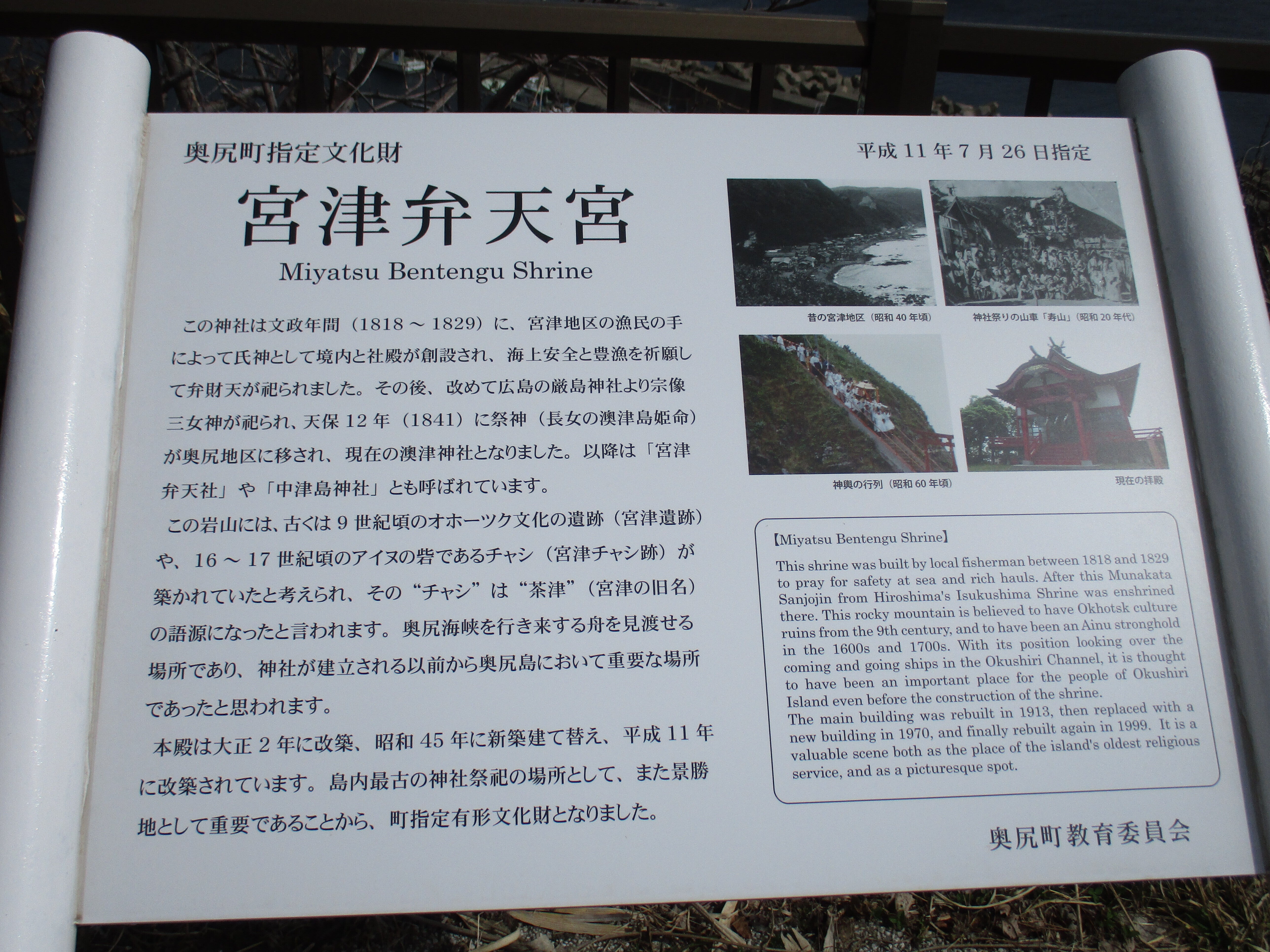 こんにちは、町の文化財で、宮津弁天宮があります。今は崩壊寸前で、クラウドファンディングの期待を込めています。定期観光のコースに入ります。景色が素晴らしく参拝者が多いです。階段が150段ほどありますので、高齢者にはきついです。赤いので、青苗の事代主神社とは違います。明上雅孝。