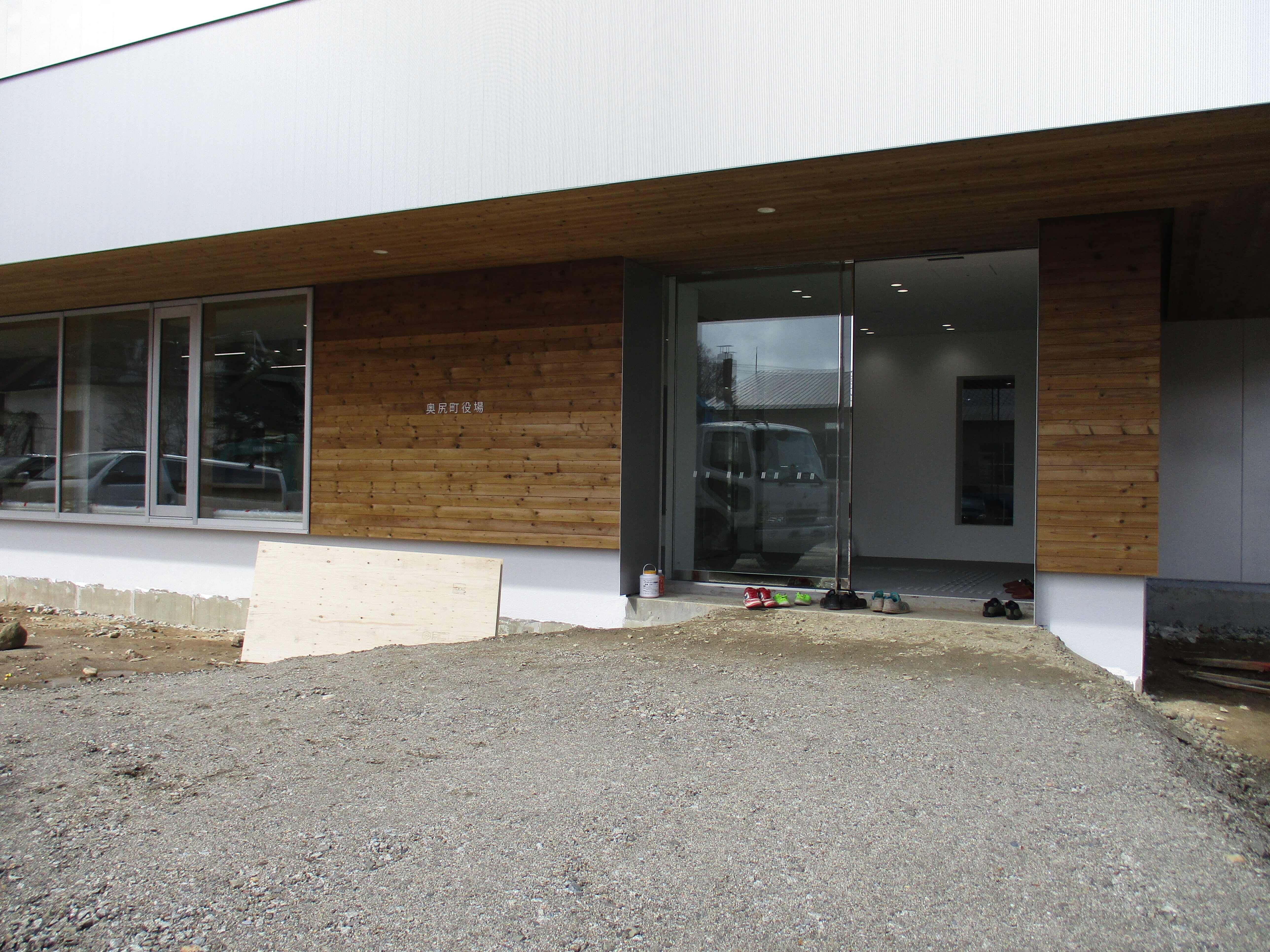 こんにちは、町の合同庁舎が完成しました。5月からスタートの予定です。27億円の建物です。今見てきました。写真も30日のものです。工事の車両はまだあります。気持ちのいい建物ですよ。観光の建物になりますね。脱炭素の。明上雅孝。