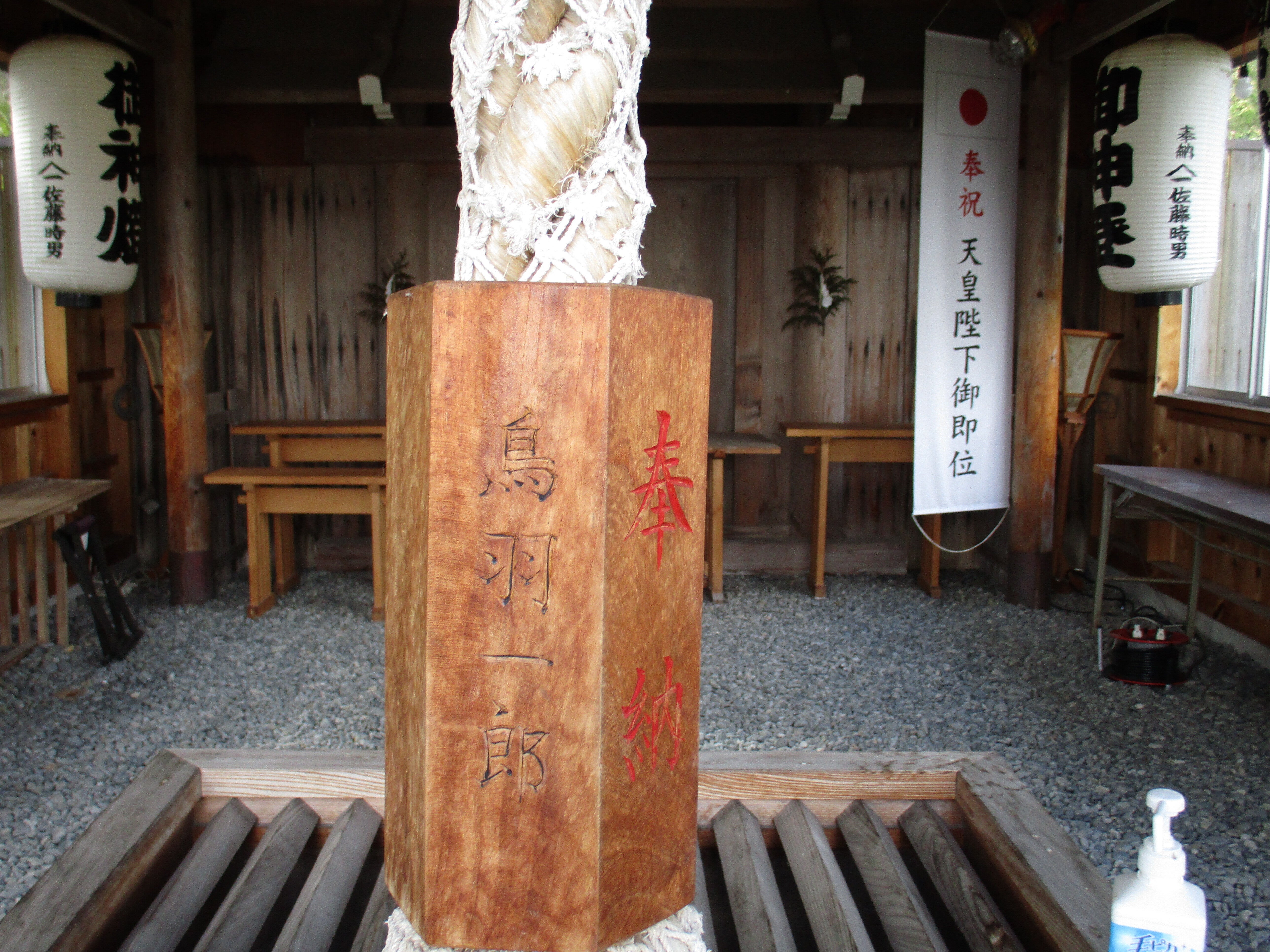 こんにちは、青苗の事代主神社の鈴は歌手の鳥羽一郎さんからの奉納された鈴です。兄弟船、鳥羽一郎と刻まれています。平成8年の出来事です。神社は平成7年に、伊勢神宮の式年遷宮で島に頂きました神社で、伊勢の月讀み宮と言われます。20年に1回での資材1式をもらえたのは、日本では奥尻島だけと言われます。由緒がありますよ。明上雅孝。