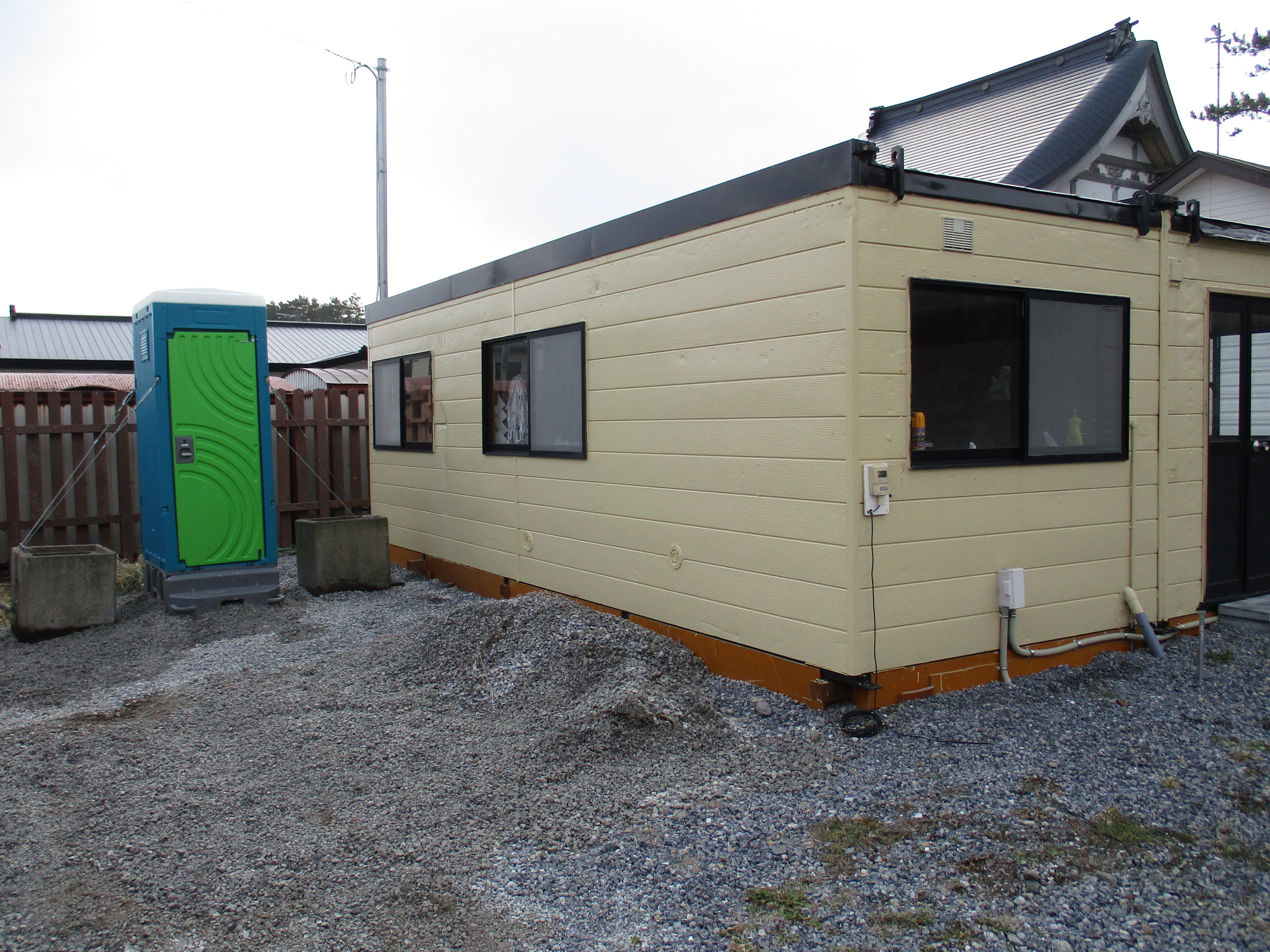 こんにちは、クラウドファンディングでの設置を終えました。社務所の完成と、簡易水洗トイレです。建物には大きく文字で歴史を刻みました。島の人も支援者の皆さんに感謝です。ありがとうございます。明上雅孝。