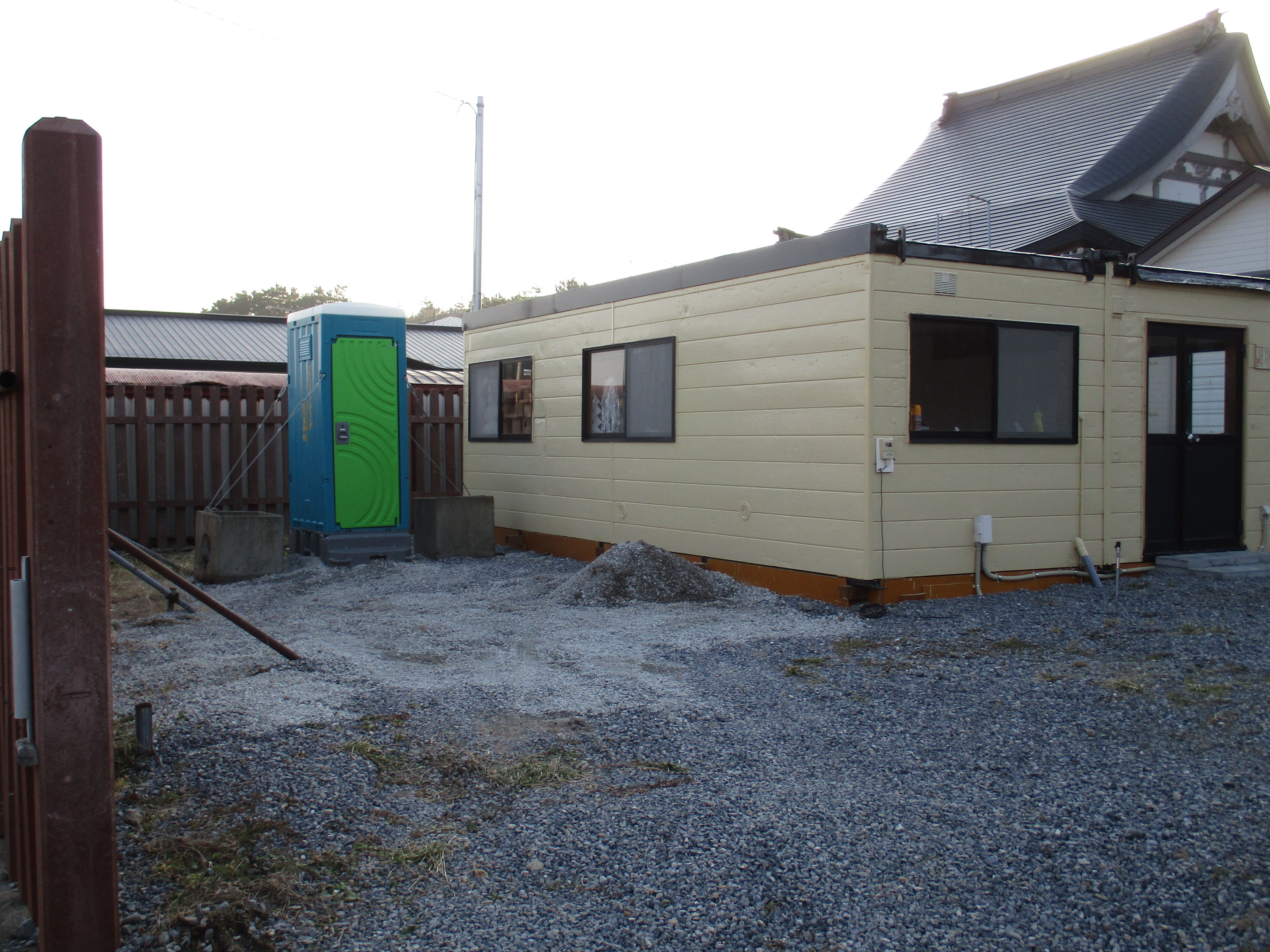 今晩は、青苗の事代主神社内です、神社の後ろにはお寺があります。クラウドファンディングでの社務所の完成と、同じく簡易水洗トイレの完成です。1年に10回程の使用です。独り言は、これでビールが飲めるの一言でした。明上雅孝。