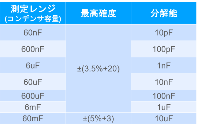 ・コンデンサ容量測定(F)