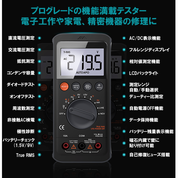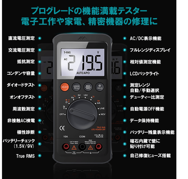 電子工作やDIYのみならず、電気機器の保守点検などにも使用されている計測器です。