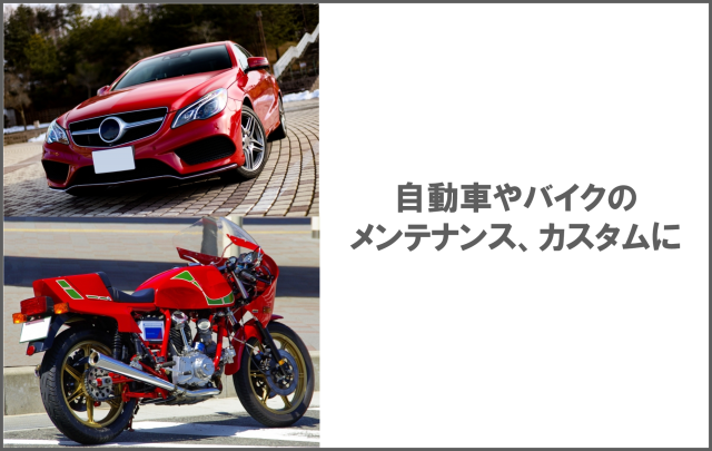 ●バイク、自動車のメンテナンス時にも便利!