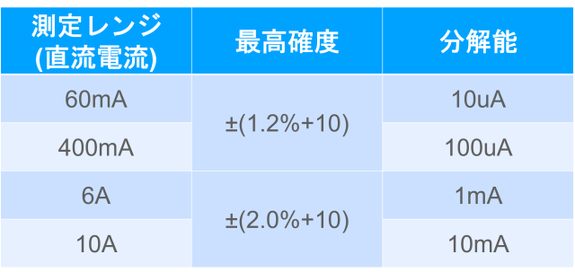 ー直流の電流を測定します。