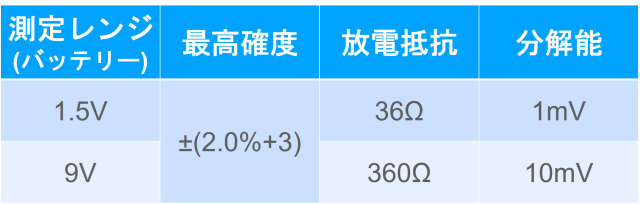 ・バッテリーチェックモード(1.5V/9V)