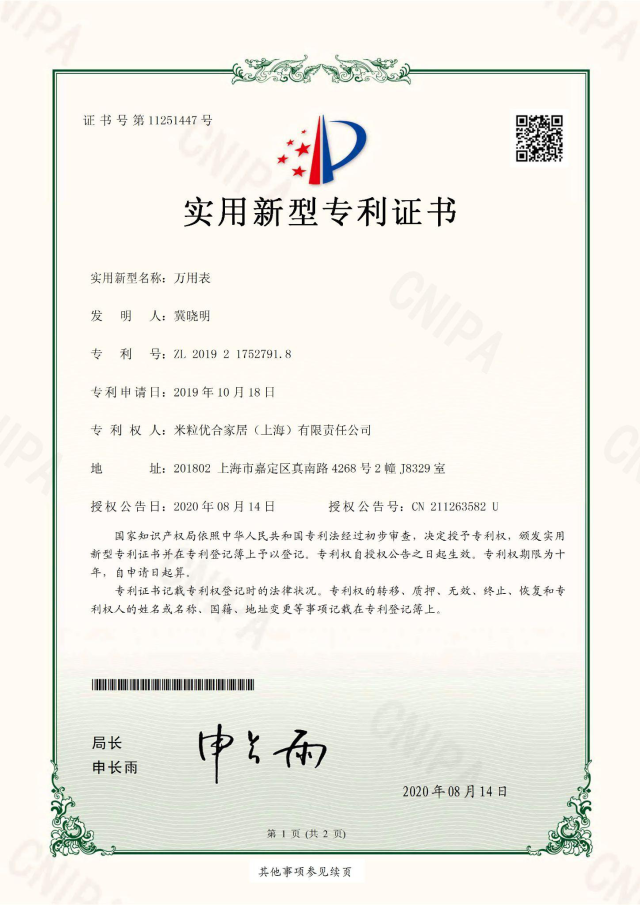 ↓中国国内で実用新案登録済です。
